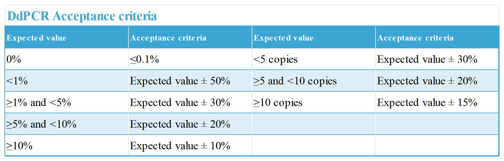 科佰的突變頻率AF是通過數(shù)字PCR檢測的,誤差范圍如下: