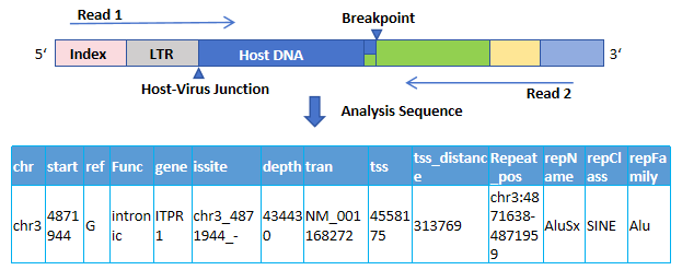 IAA整合關聯擴增結果![]() NGS捕獲法結果 ![]() Sanger結果 3'LTR+ITPR1 chr3_4871940