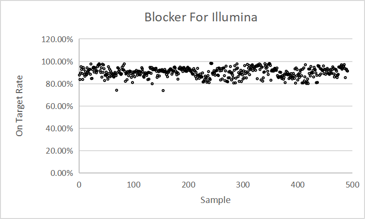 1. Blockers適用于結(jié)構(gòu)如下單端或雙端Illumina平臺的 6 - 10 bp Barcode標(biāo)記的DNA文庫液相雜交捕獲體系: 5´-CAAGCAGAAGACGGCATACGAGAT[i7_6-10bp_index]GTGACTGGAGTTCAGACGTGTGCTCTTCCGATCT-3´ |