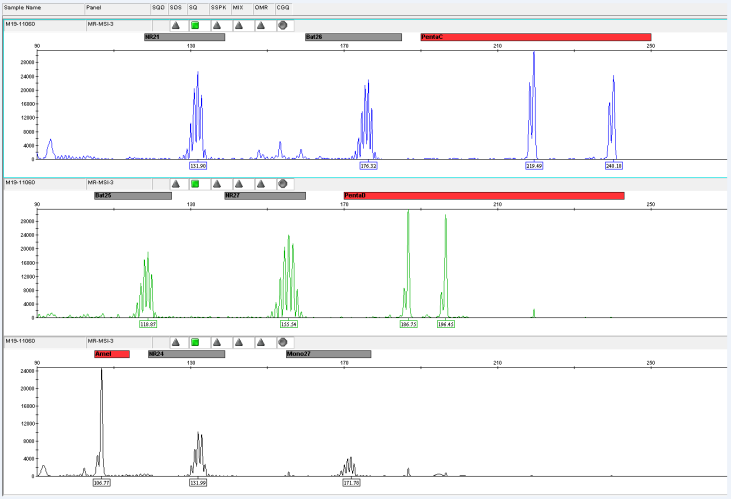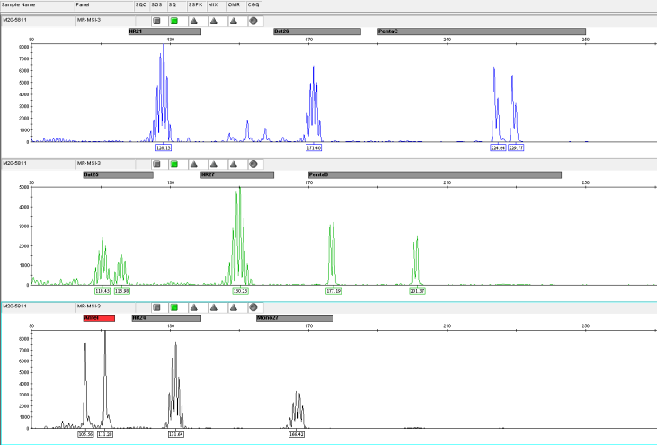 微衛(wèi)星是人類基因組的一段串聯(lián)重復(fù)序列,一般在1~6bp之間,又被稱作短串連重復(fù)(Short Tandem Repeats,STRs)或簡單重復(fù)序列(Simple Sequence Repeat,SSRs)。 微衛(wèi)星不穩(wěn)定(Microsatellite Instability,MSI)指的是微衛(wèi)星重復(fù)次數(shù)減少或者增加,微衛(wèi)星不穩(wěn)定的內(nèi)在機制是錯配修復(fù)(MMR)系統(tǒng)失調(diào),從而限制了糾正微衛(wèi)星自發(fā)的長度改變的體細胞突變的能力,體細胞突變積累,最終形成MSI。
