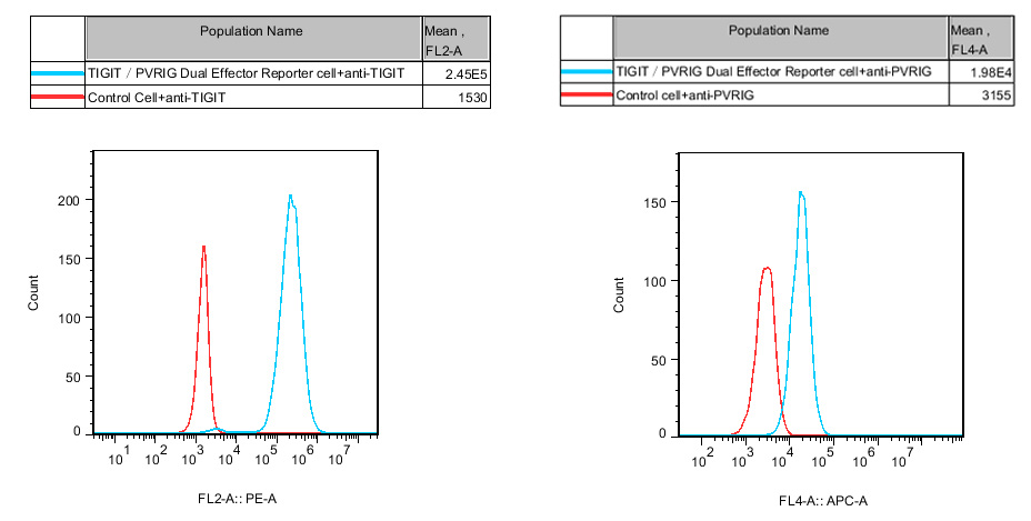 Figure 2. Recombinant TIGIT/PVRIG Dual Effector Reporter Cell constitutively expressing TIGIT and PVRIG.