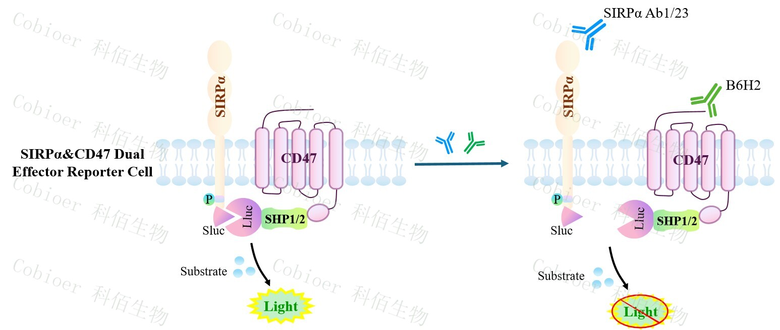 ![]() Figure 1. SIRPα&CD47 Dual Effector Reporter Cell 模型原理圖 |