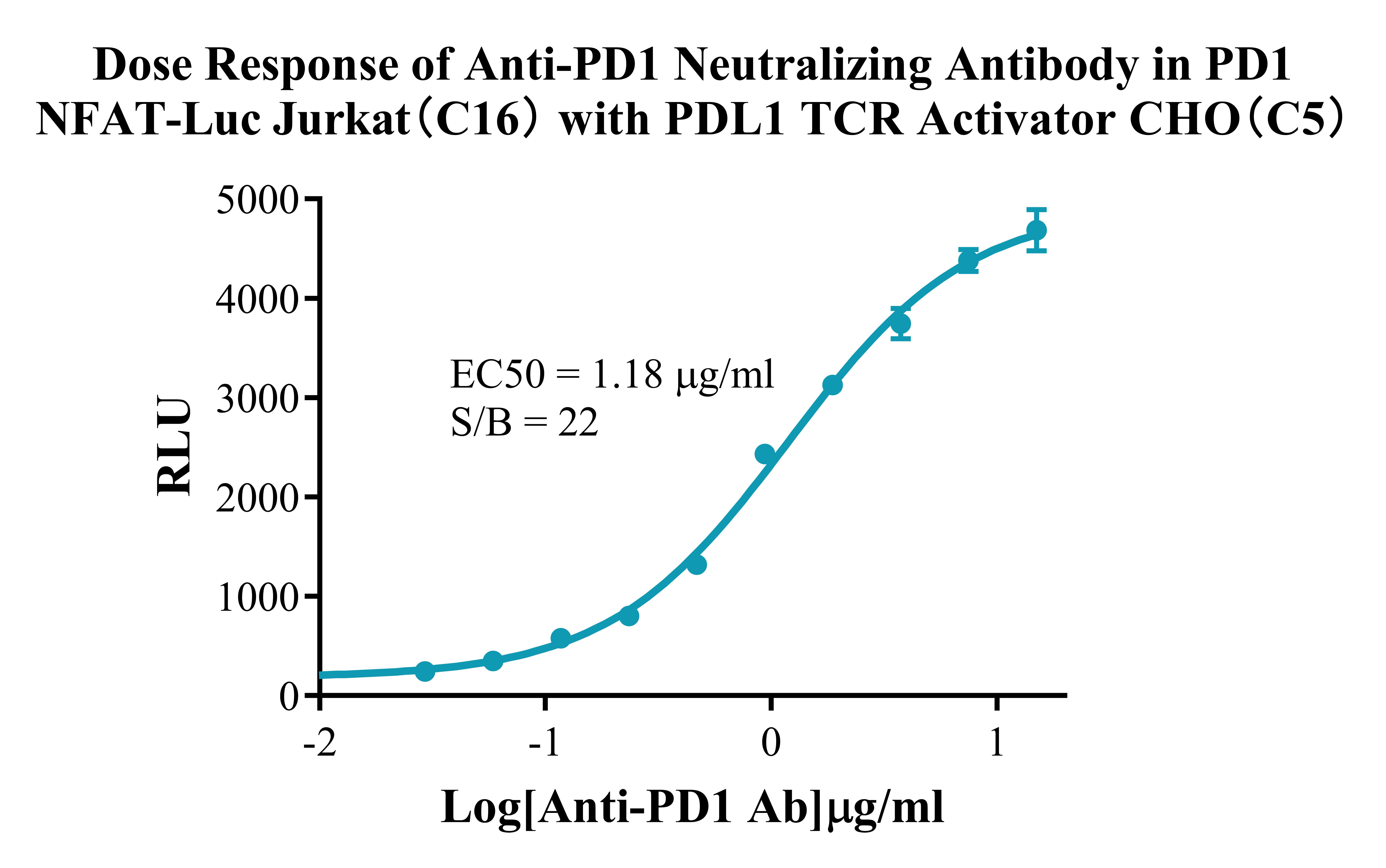 Figure 3.Detect Luciferase assay by Ultra Luciferase Detection Kit CBPH0001(we strongly suggest to purchase from Cobioer). Dose response of Anti-PD1 Neutralizing Antibody in PD1 NFAT-Luc Jurkat(C16) with PDL1 TCR Activator CHO(C5).