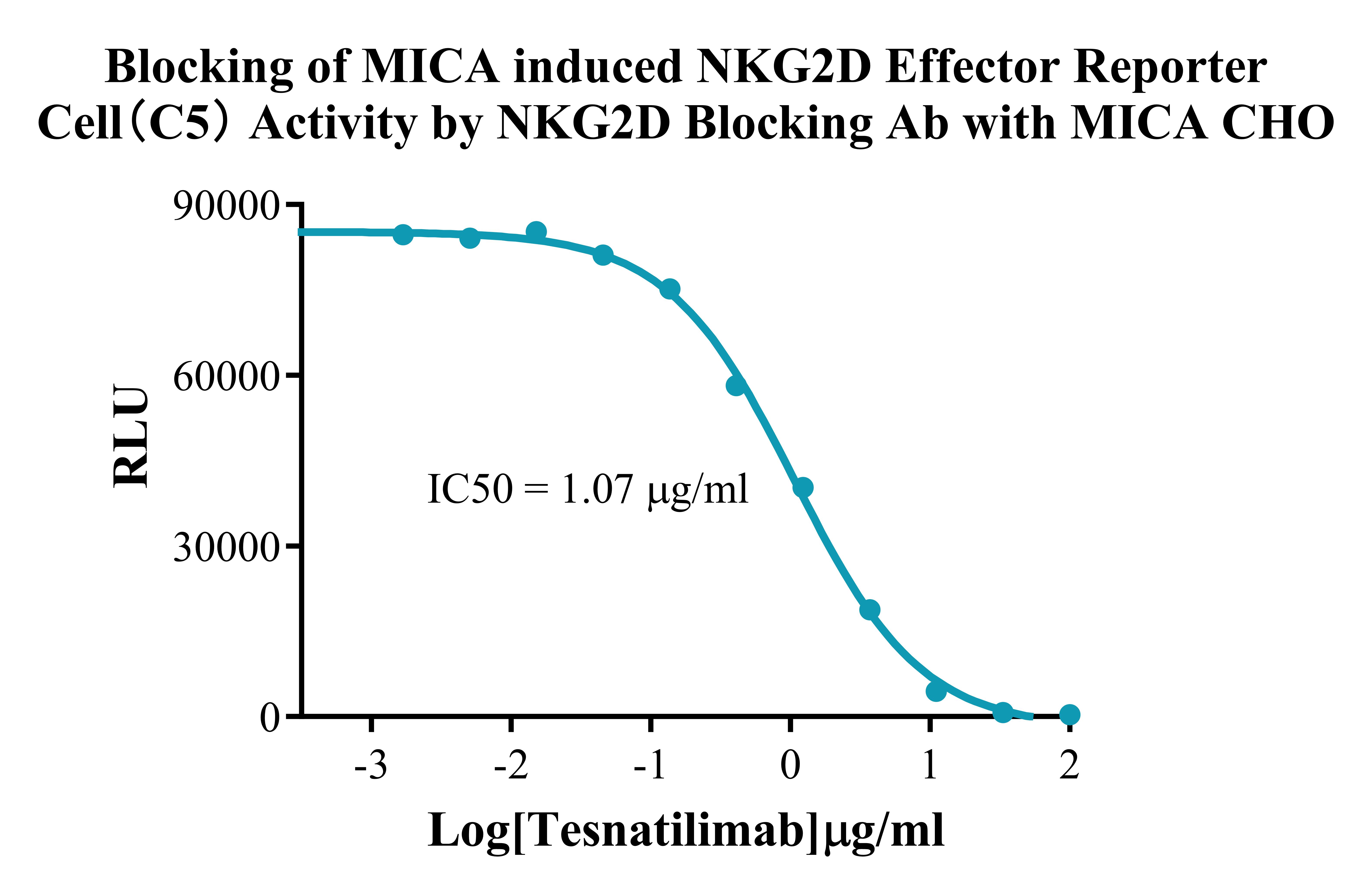 Figure 2. Blocking of MICA induced NKG2D Effector Reporter Cell (C5) Activity by NKG2D Blocking Ab with MICA CHO. |