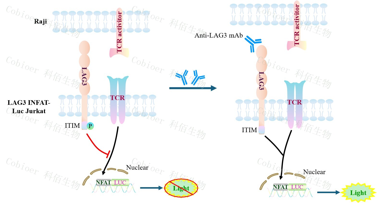 Figure 1. LAG3 NFAT-Luc Jurkat 細(xì)胞模型原理圖