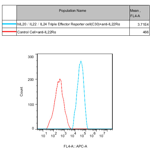 Figure 2. Recombinant hIL20/IL22/IL24 Triple Effector Reporter Cell stably expressing IL22R1.