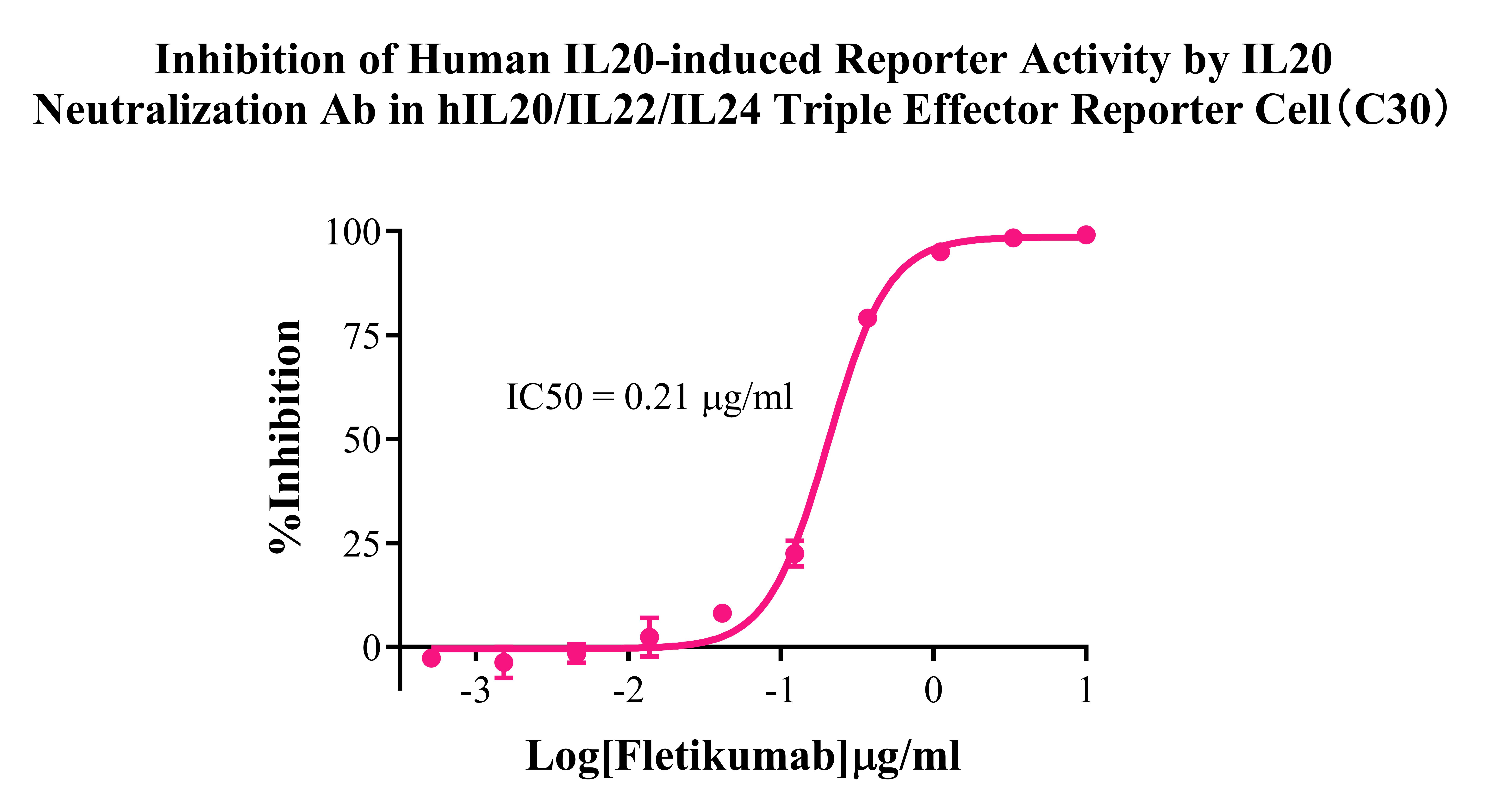 Figure 5. Inhibition of Human IL20-induced Reporter Activity by IL20 Neutralization Ab in hIL20/IL22/IL24 Triple Effector Reporter Cell(C30). |