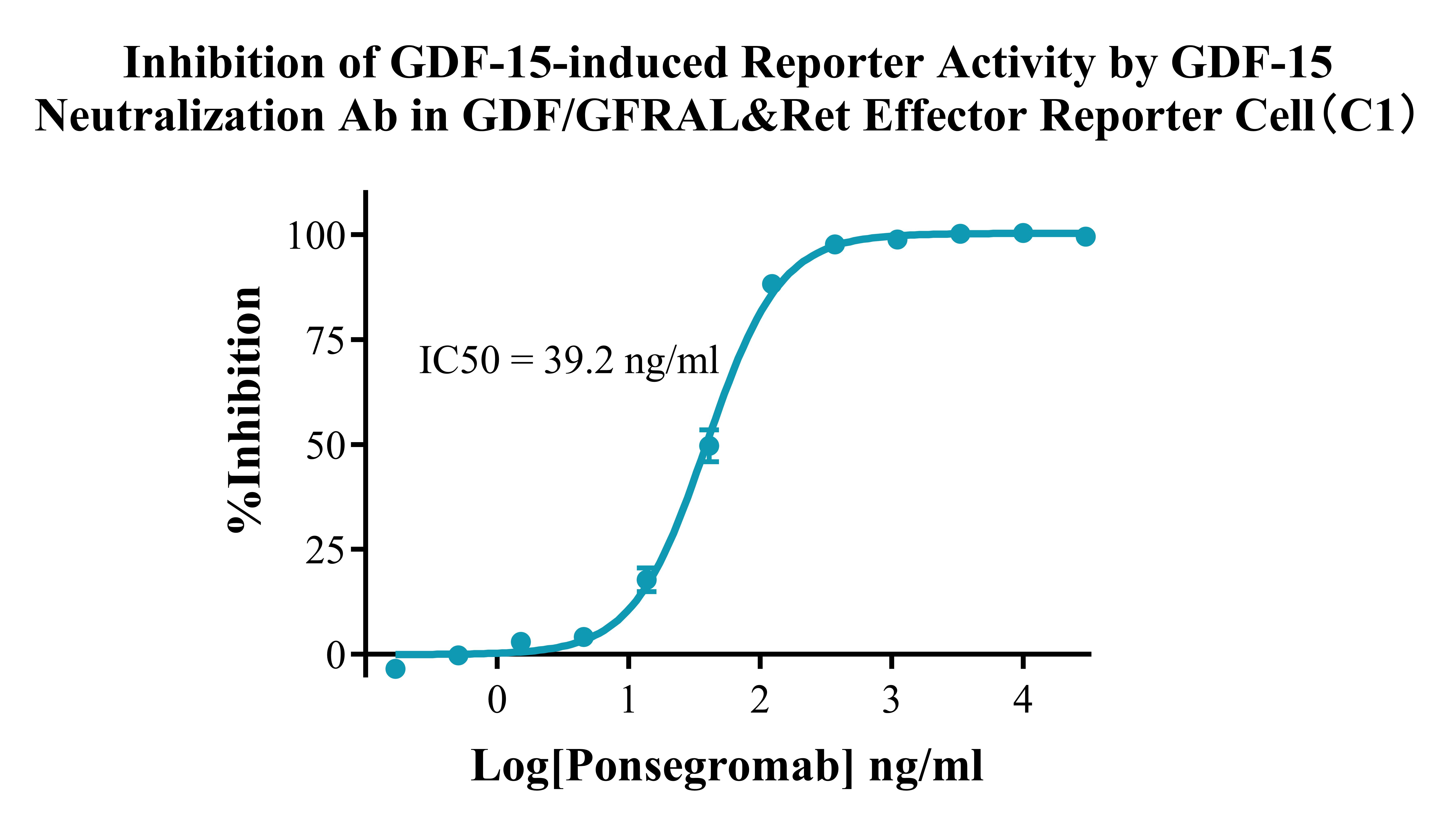 Figure 5.Inhibition of GDF-15-induced Reporter Activity by GDF-15 Neutralization Ab in GDF/GFRAL&Ret Effector Reporter Cell (C1). |