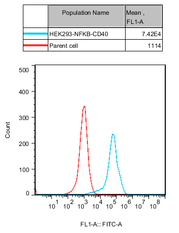 Figure 2. Recombinant CD40/NFκB-Luc/HEK293 constitutively expressing CD40. |