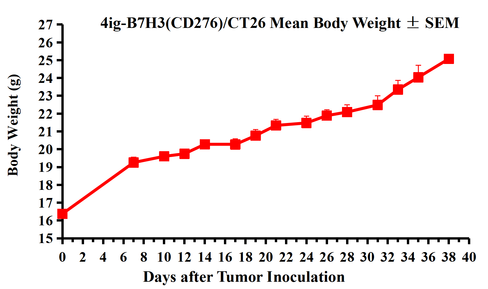 Figure 2. 4ig-B7H3(CD276)/CT26 Mean Body Weight ± SEM.