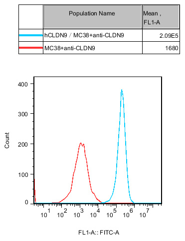 Figure 1. Recombinant hClaudin9(CLDN9)/MC38 stably expressing CLDN9.