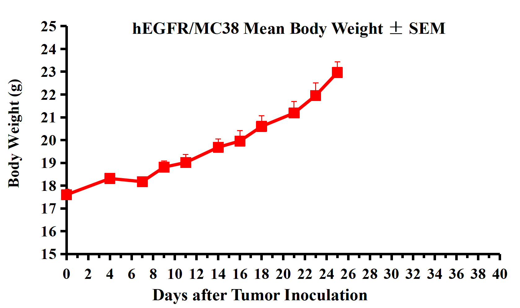 Figure 2. hEGFR/MC38 Mean Body Weight ± SEM.