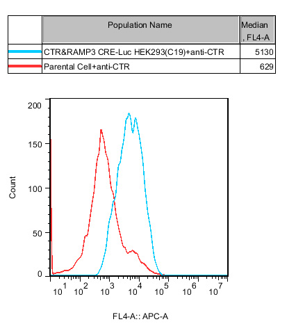 CTR&CTR&RAMP3 CRE-Luc HEK293 報(bào)告基因藥靶模型很好的模擬了體內(nèi) CTR 的信號(hào)轉(zhuǎn)導(dǎo) 過(guò)程,原理見(jiàn)下圖所示。![]() Figure 1. CTR&RAMP3 CRE-Luc HEK293 細(xì)胞模型原理圖 |
