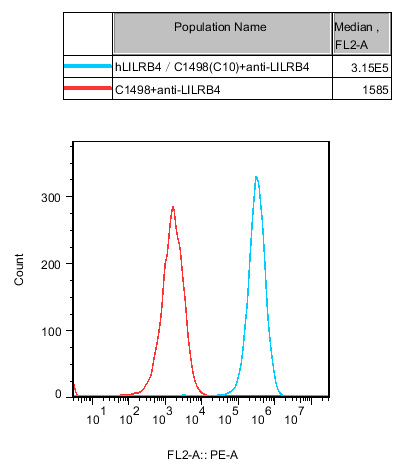 IV. Representative Data![]() Figure 1. Recombinant hLILRB4/C1498 stably expressing hLILRB4. |