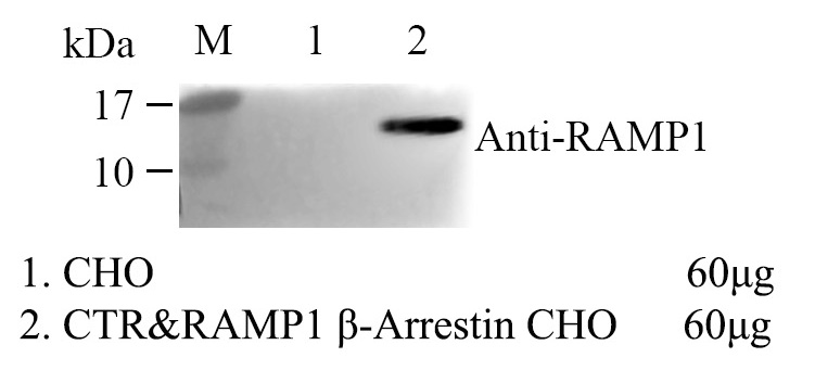 IV. Representative Data![]() Figure 2. WB of CTR&RAMP1 β-Arrestin CHO. ![]() Figure 3. Recombinant CTR&RAMP1 β-Arrestin CHO stably expressing CTR. ![]() Figure 4. Dose response of Agonists in CTR&RAMP1 β-Arrestin CHO(C5). |