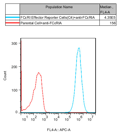 IV. Representative Data![]() Figure 2. Recombinant FcεRI Effector Reporter Cell stably expressing FcεRI. ![]() Figure 3. Dose Response of Human IgE in FcεRI Effector Reporter Cell(C4). ![]() Figure 4. Inhibition of Human IgE-induced Reporter Activity by Human IgE Neutralization Ab in FcεRI Effector Reporter Cell(C4). |