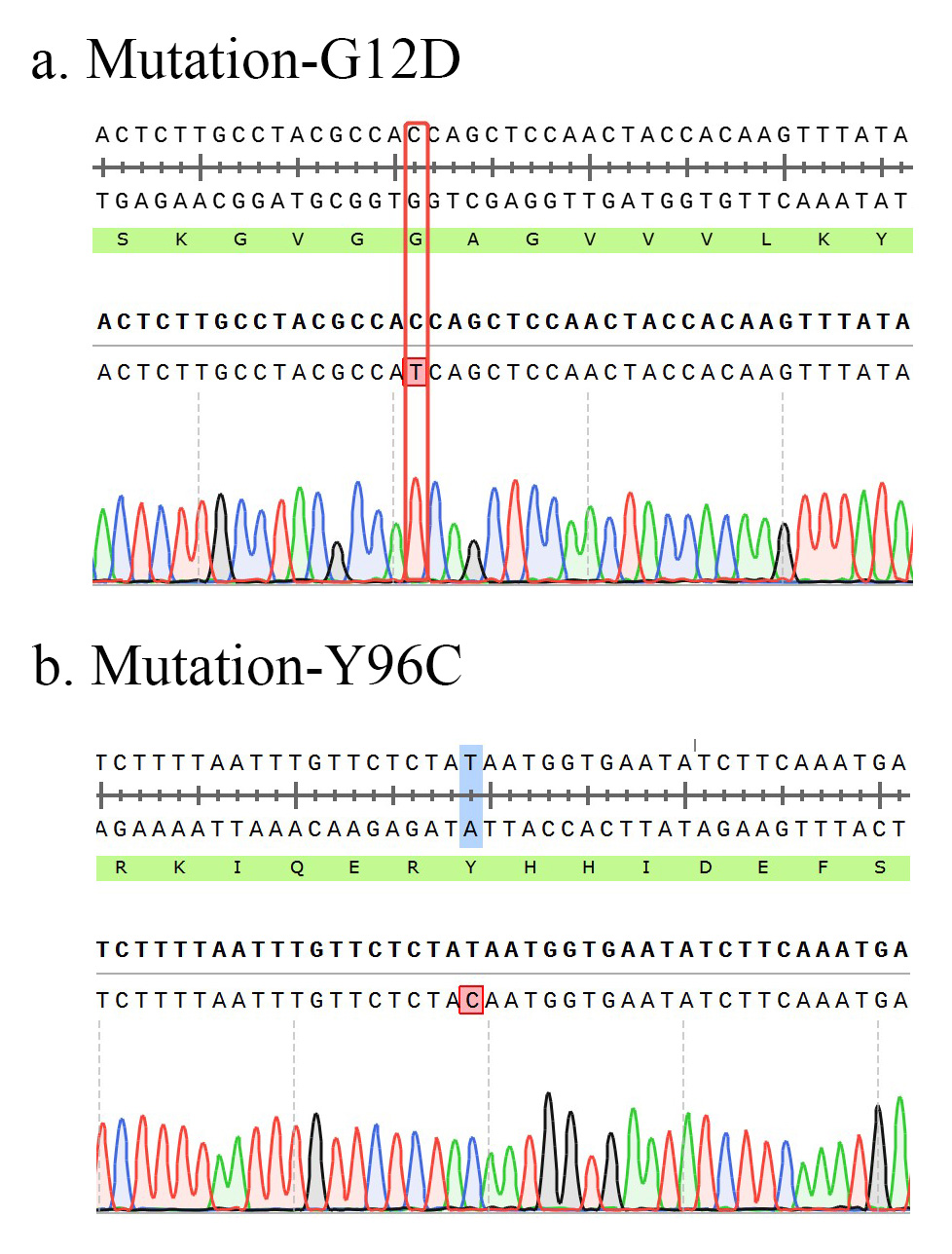 1.WB of KRAS [G12D&Y96C] BaF3 Figure 2. WB of KRAS [G12D&Y96C] BaF3 2.Sanger of KRAS [G12D&Y96C] BaF3 |