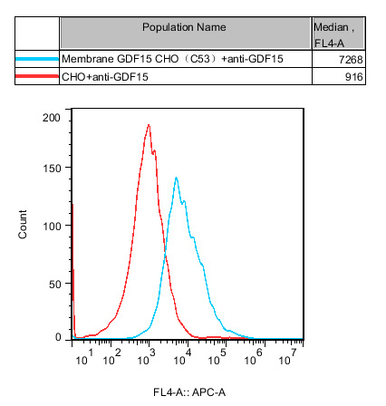 IV. Representative Data![]() Figure 1. Recombinant Membrane GDF15 CHO stably expressing GDF15. |