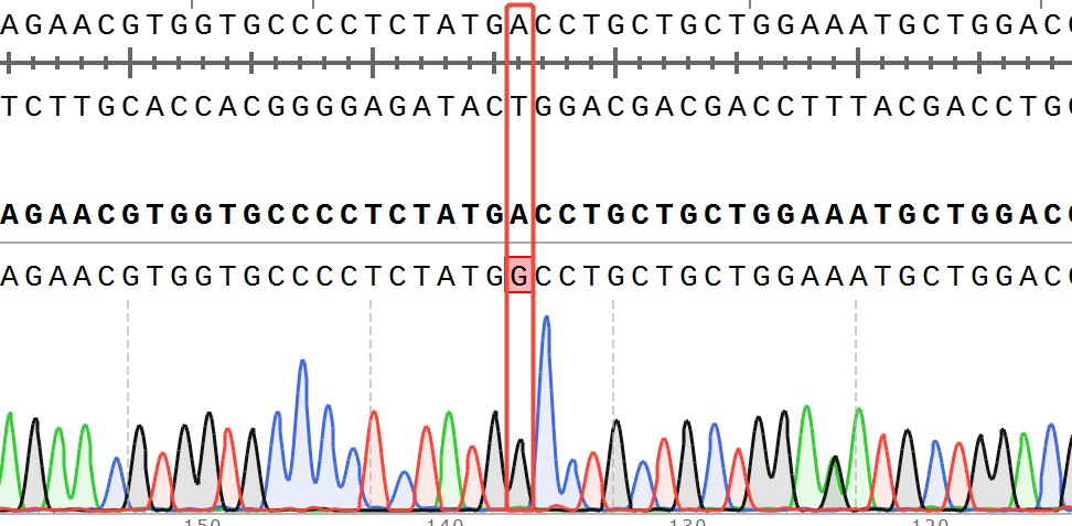 ESR1[D538G](Homozygous,AF%:100) Isogenic MCF7 藥靶細胞,通過基 因編輯的方式將 ESR1 的 538 位氨基酸天冬氨酸(D)突變?yōu)楦拾彼幔℅)。![]() Figure 1. ESR1[D538G](Homozygous,AF%:100) Isogenic MCF7 原理示意圖 |