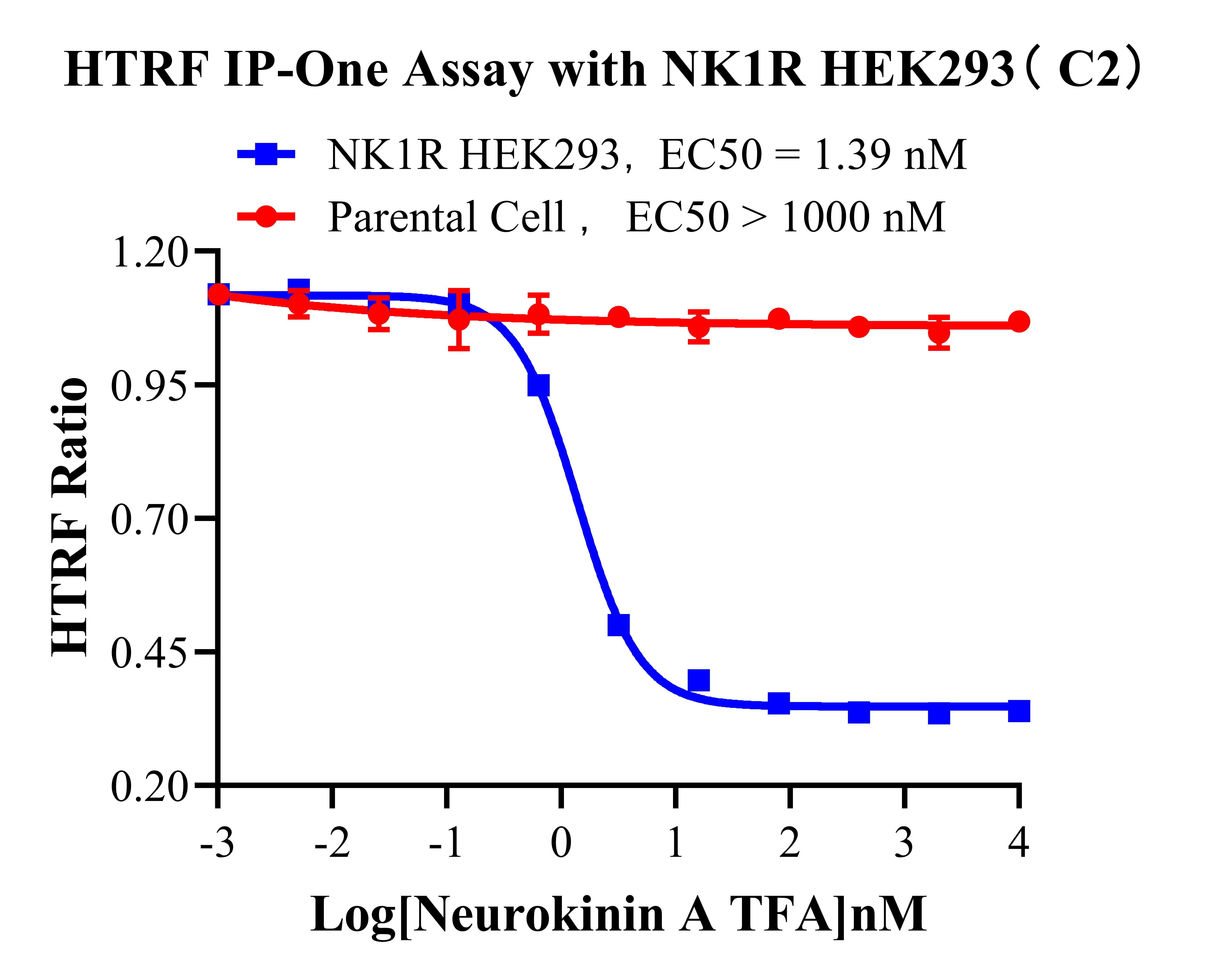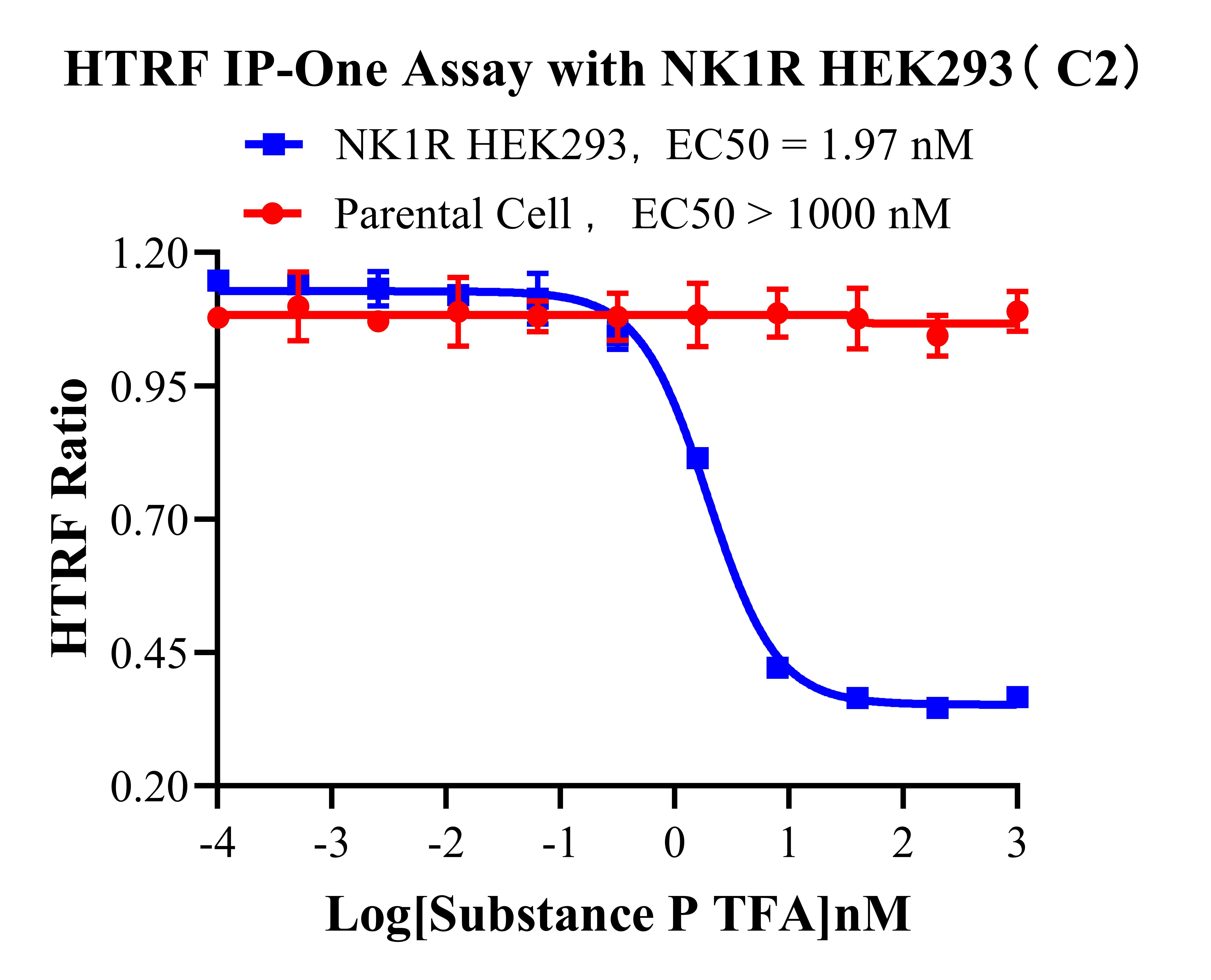 NK1R HEK293 細胞藥靶模型很好的模擬了體內 NK1R 的信號轉導過程,原理見下圖所示。