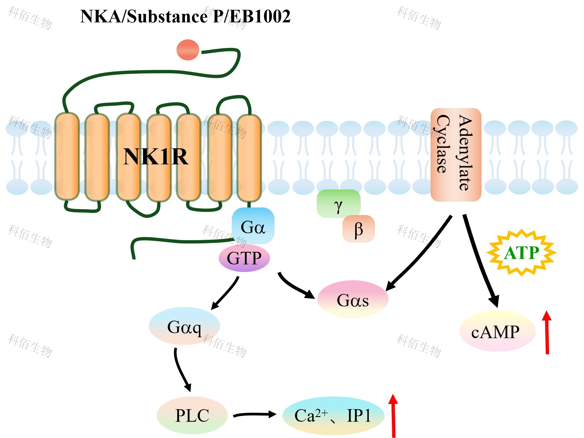 速激肽(Tachykinins )是分布在哺乳動物中樞和周圍神經系統(tǒng)中的一類神經肽。速激 肽物質 P(SP)、神經激肽 A(NKA)和神經激肽 B(NKB)共享一個保守的 C 端基序, 對速激肽受體(NK1R、NK2R 和 NK3R)的激活至關重要。NKA 優(yōu)先激活與 Gα偶聯的 NK2R,而 SP 和 NKB 分別優(yōu)先結合 NK1R 和 NK3R。三種速激肽都能夠在所有速激肽受 體類型中表現為完全激動劑。 NK1R(Neurokinin 1 Receptor),又稱 TACR1,是速激肽受體家族的核心成員,其內 源性配體為 P 物質(Substance P)。 |