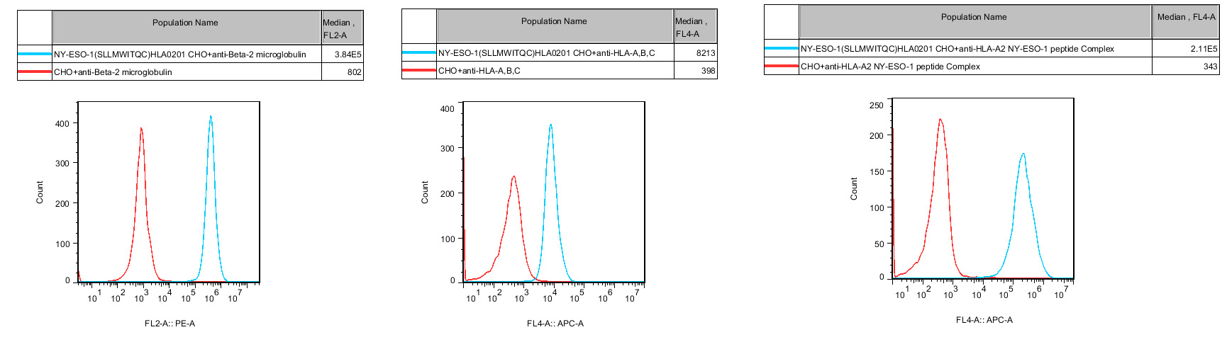 IV. Representative Data![]() Figure 1. Recombinant NY-ESO-1(SLLMWITQC)HLA0201 CHO stably expressing B2M & HLA0201& NY-ESO-1. |