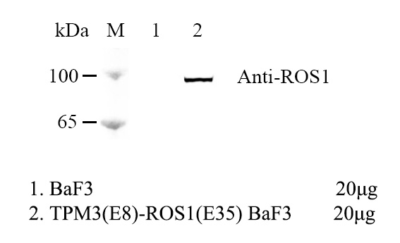 1.WB of TPM3(E8)-ROS1(E35) BaF3 Figure 2. WB of TPM3(E8)-ROS1(E35) BaF3 2.Sanger of TPM3(E8)-ROS1(E35) BaF3 |