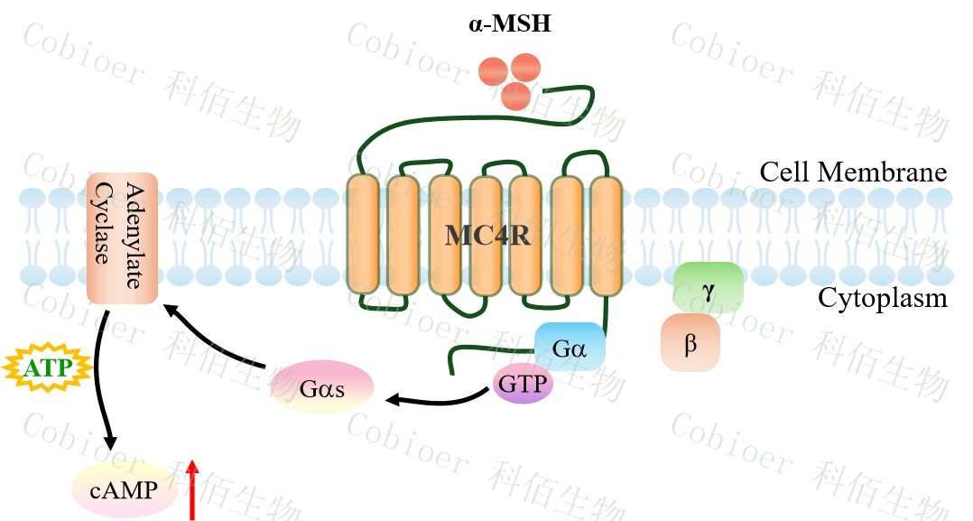 黑皮質(zhì)素 4 受體(MC4R)是黑皮質(zhì)素受體家族成員之一,其家族成員還包括:MC1R、 MC2R、MC3R 和 MC5R。該家族也是 GPCR 超家族中具有重大治療前景的一個亞家族, 屬于視紫紅質(zhì)樣 A 類 GPCR。MC4R 主要分布于下丘腦室旁核、杏仁核等食欲與能量平衡 調(diào)控中樞,其內(nèi)源性激動配體為α-黑素細胞刺激素(α-MSH),拮抗配體為刺豚鼠相關(guān)蛋 白(AgRP);該受體通過偶聯(lián) Gs 蛋白激活腺苷酸環(huán)化酶,引起 cAMP 升高,從而啟動 PKA/CREB 信號通路,并介導(dǎo)β-arrestin 依賴的 MAPK 活化,核心功能為抑制食欲、促進能 量消耗,其功能喪失性突變直接導(dǎo)致單基因肥胖、胰島素抵抗及代謝綜合征,而功能獲得 性突變則與反常的瘦表型相關(guān)。 |