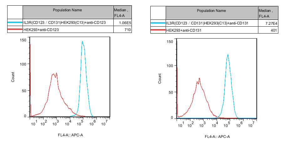 IL3R(CD123/CD131) HEK293 細(xì)胞,在 HEK293 細(xì)胞的基礎(chǔ)上,穩(wěn)定表達(dá)人 IL3R(CD123/CD131)。 |