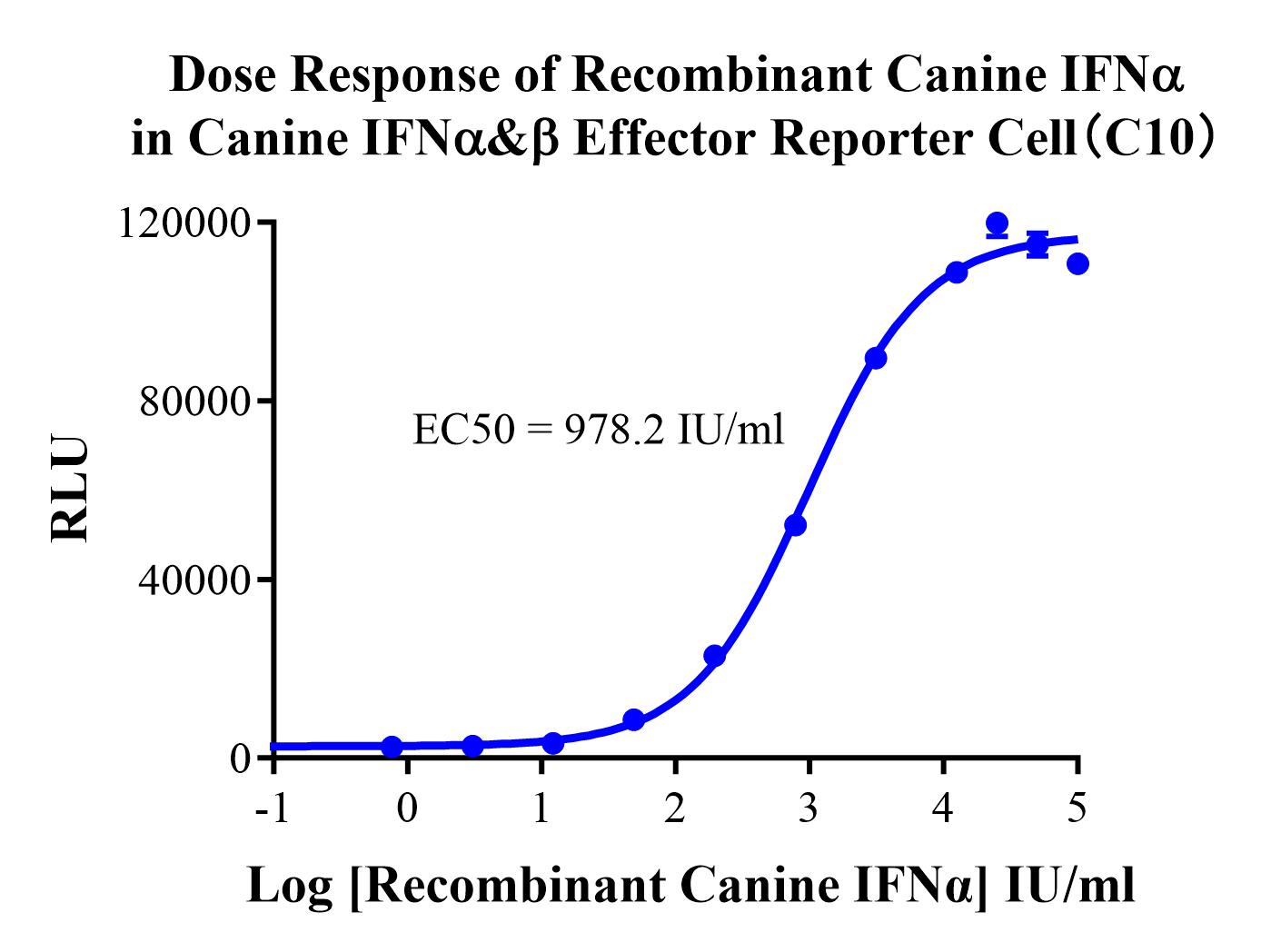 ![]() Figure 2. Dose Response of Recombinant Canine IFNα in Canine IFNα&β Effector Reporter Cell(C10). |