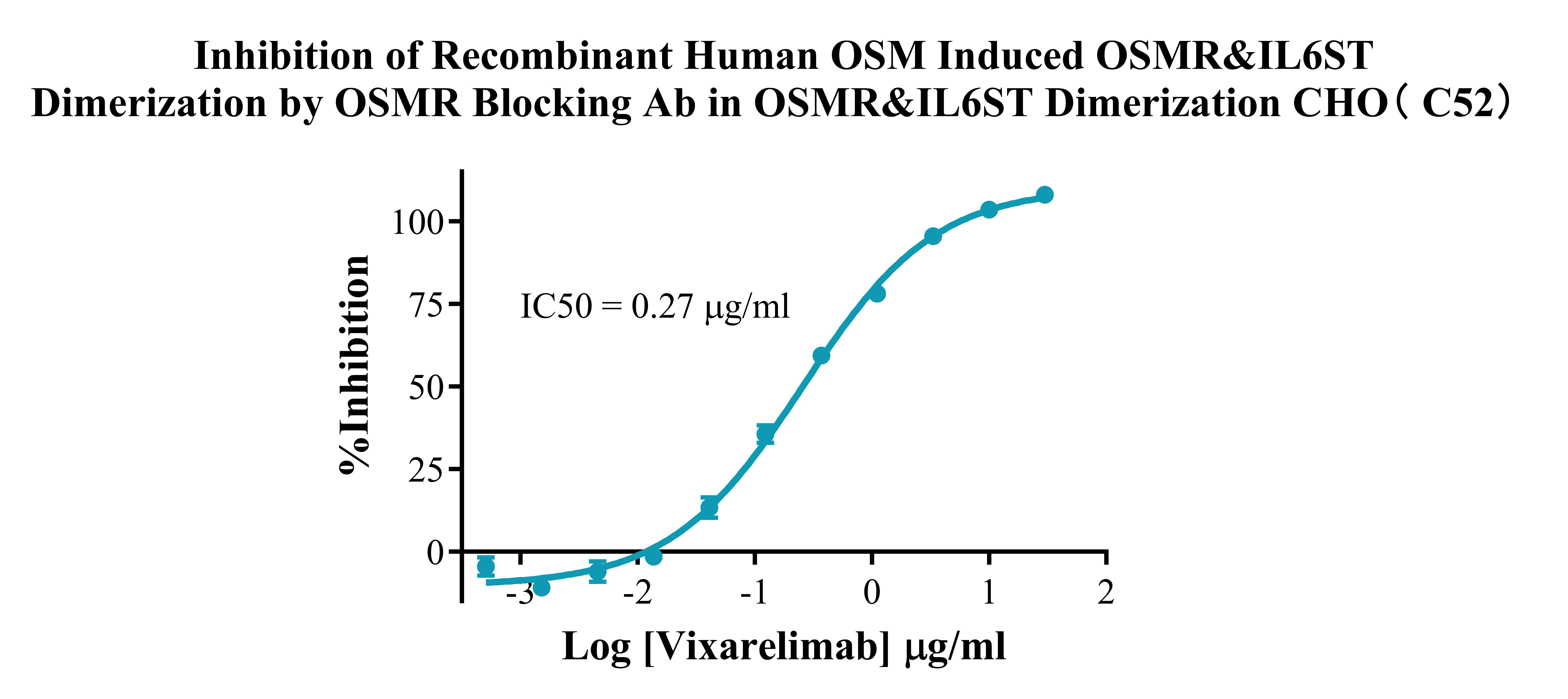 ![]() Figure 4. Inhibition of Recombinant Human OSM induced OSMR&IL6ST Dimerization by OSMR Blocking Ab in OSMR&IL6ST Dimerization CHO (C52). |