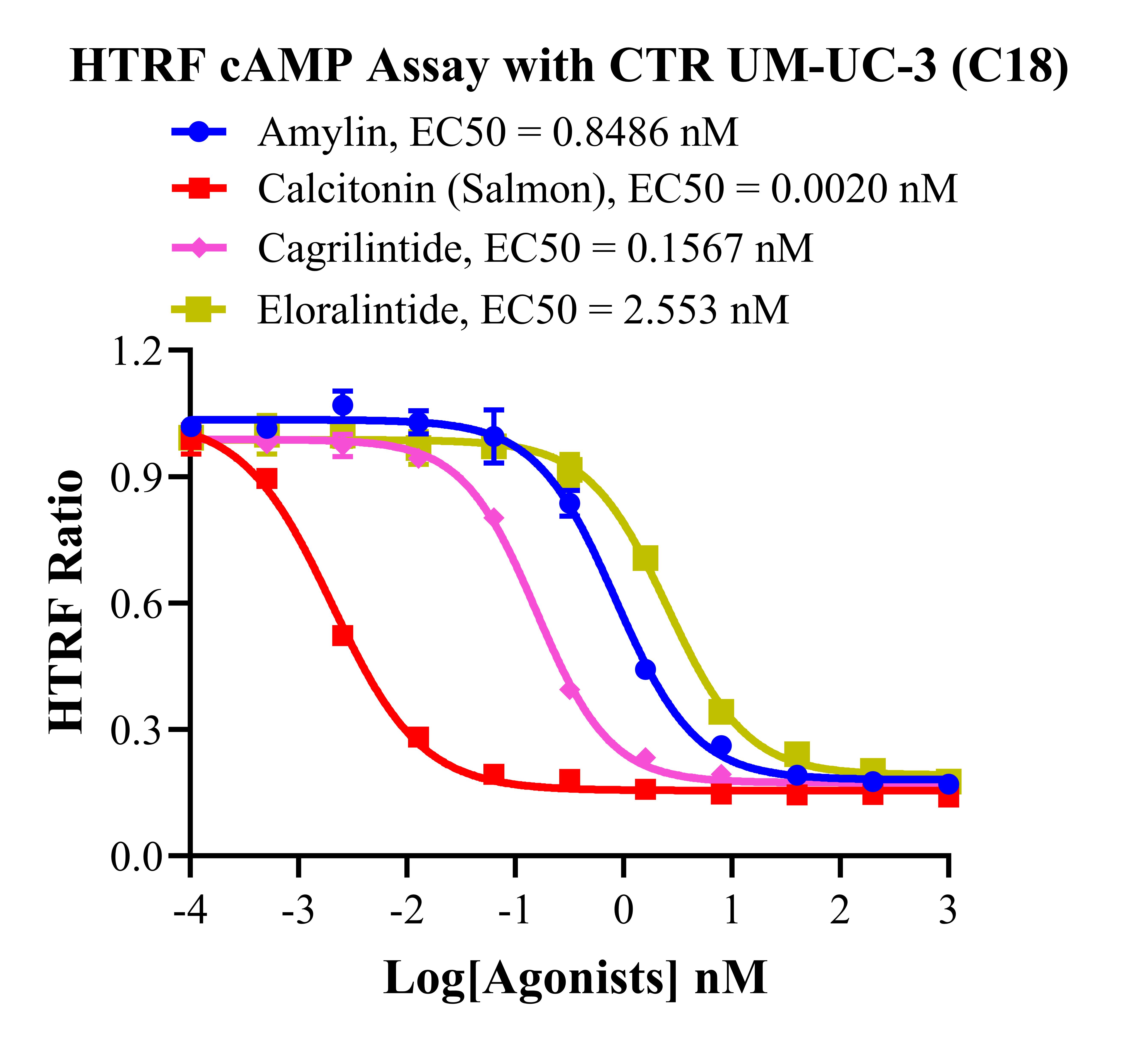 CTR UM-UC-3 細(xì)胞藥靶模型很好的模擬了體內(nèi) CTR 的信號(hào)轉(zhuǎn)導(dǎo)過程,原理見下圖所示。![]() Figure 1. CTR UM-UC-3 細(xì)胞模型原理圖 |