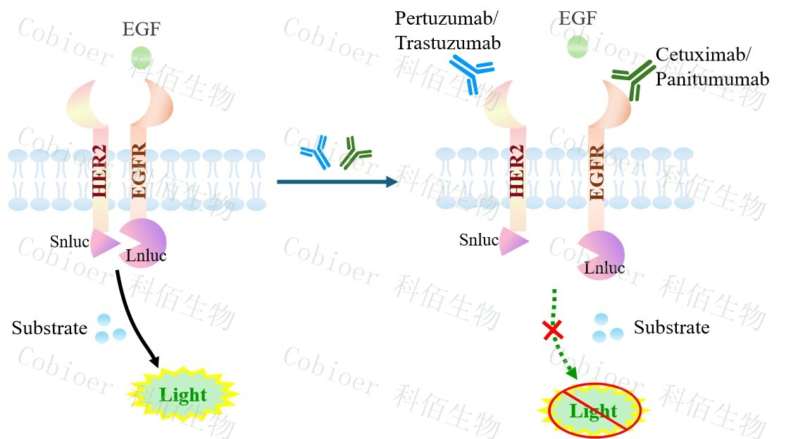 EGFR&ERBB2 Dimerization CHO 報(bào)告基因藥靶模型很好的模擬了體內(nèi) EGFR&ERBB2 的信號(hào)轉(zhuǎn)導(dǎo)過(guò)程,原理見(jiàn)下圖所示。![]() Figure 1. EGFR&ERBB2 Dimerization CHO 細(xì)胞模型原理圖 |