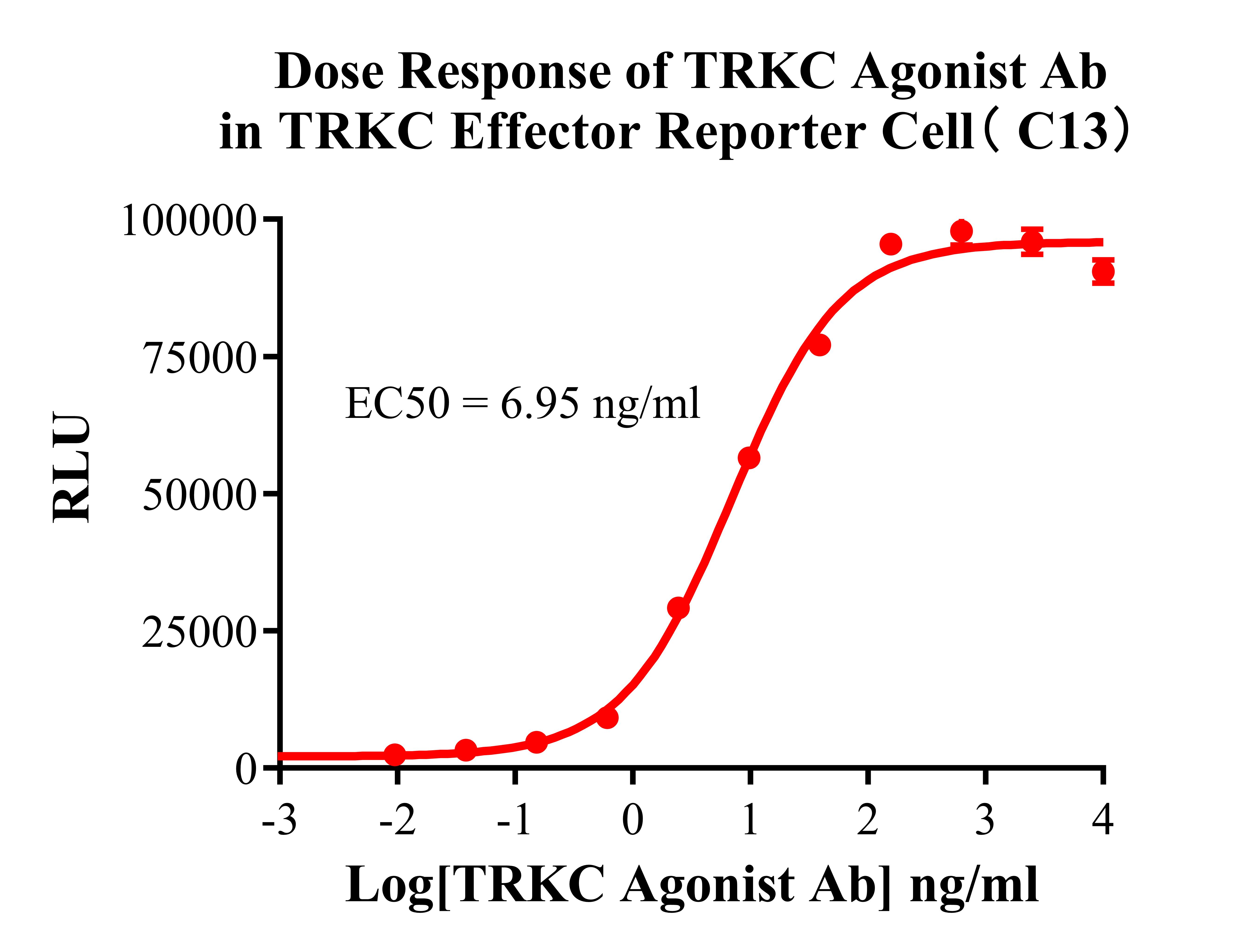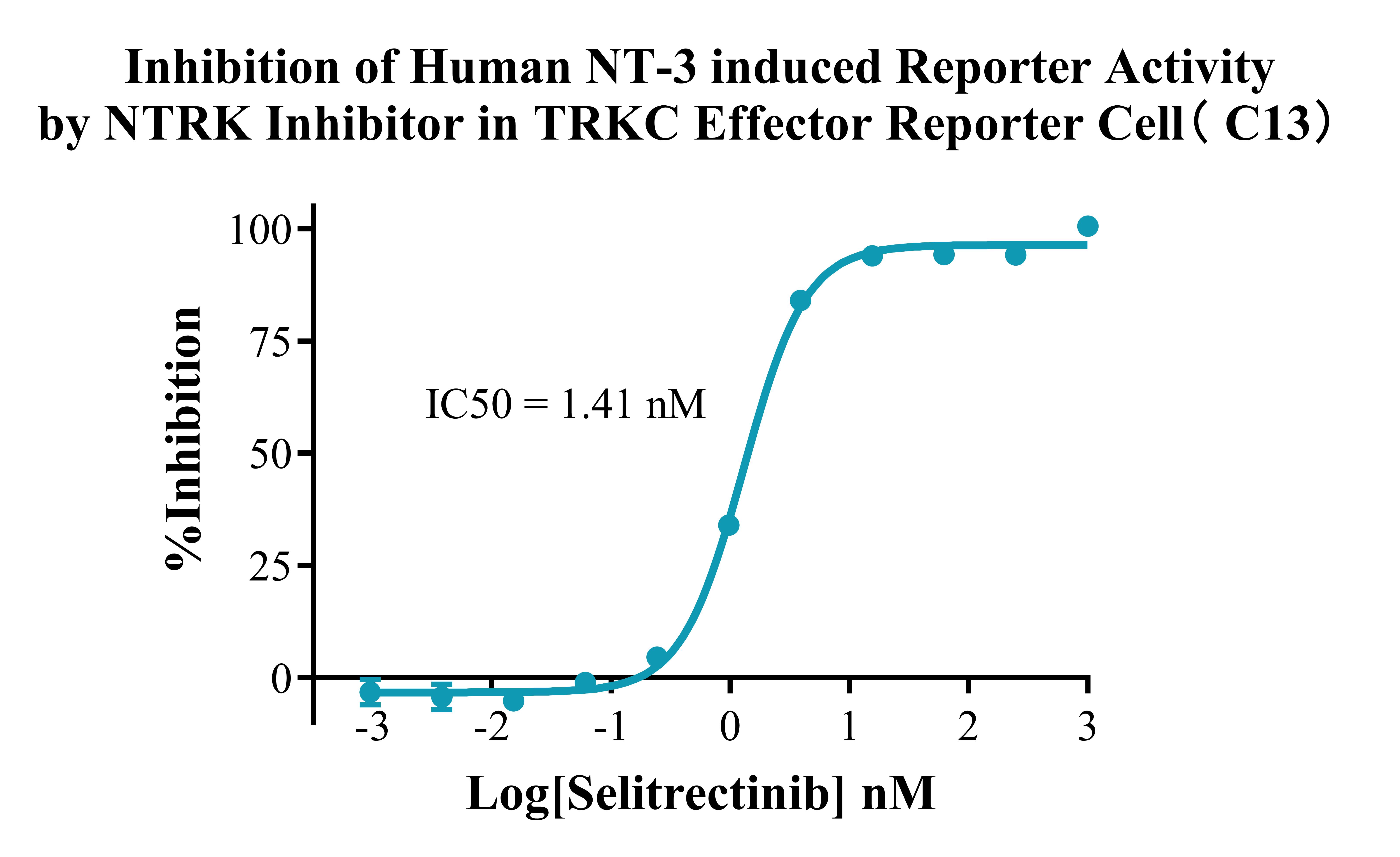 ![]() Figure 2. Recombinant TRKC Effector Reporter Cell stably expressing TRKC. ![]() Figure 3. Dose Response of Recombinant Human NT-3 in TRKC Effector Reporter Cell( C13). ![]() Figure 4. Dose Response of TRKC Agonist Ab in TRKC Effector Reporter Cell( C13). ![]() Figure 5. Inhibition of Human NT-3 induced Reporter Activity by NTRK Inhibitor in TRKC Effector Reporter Cell( C13). |