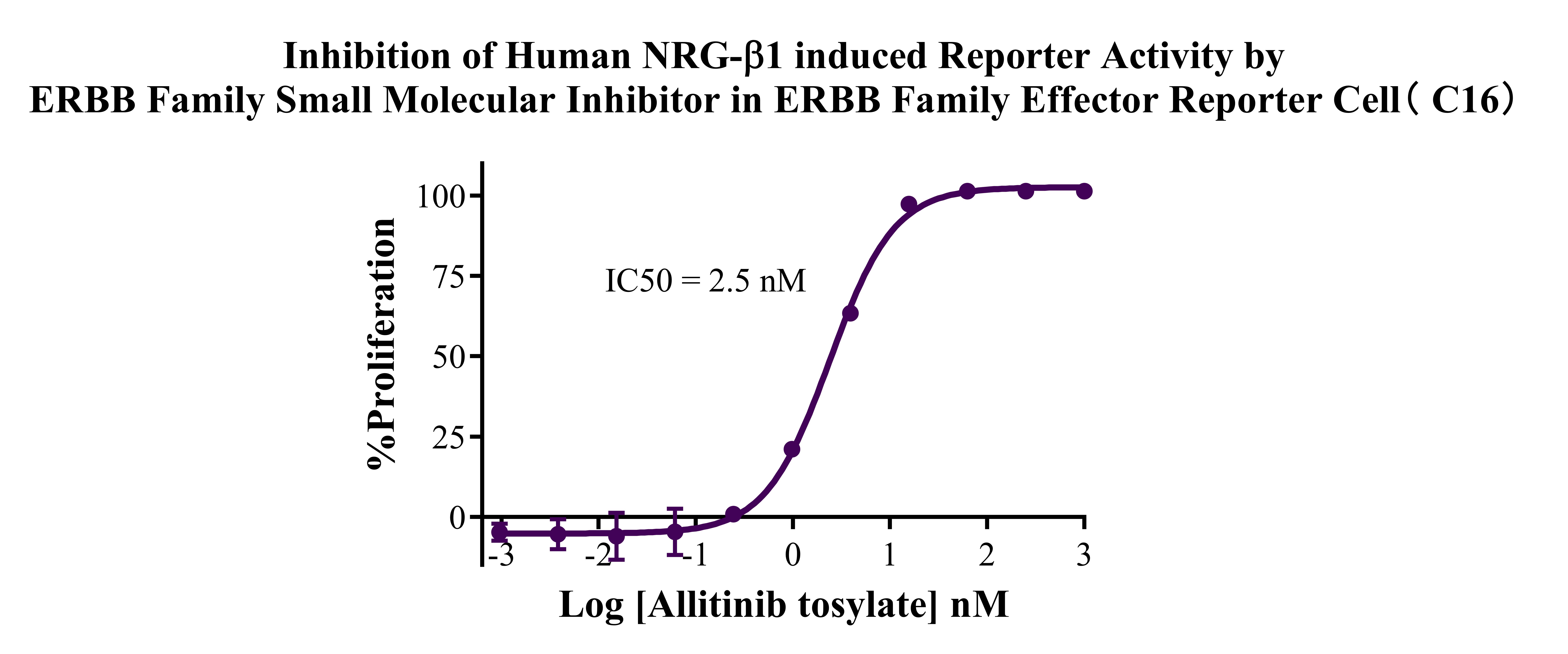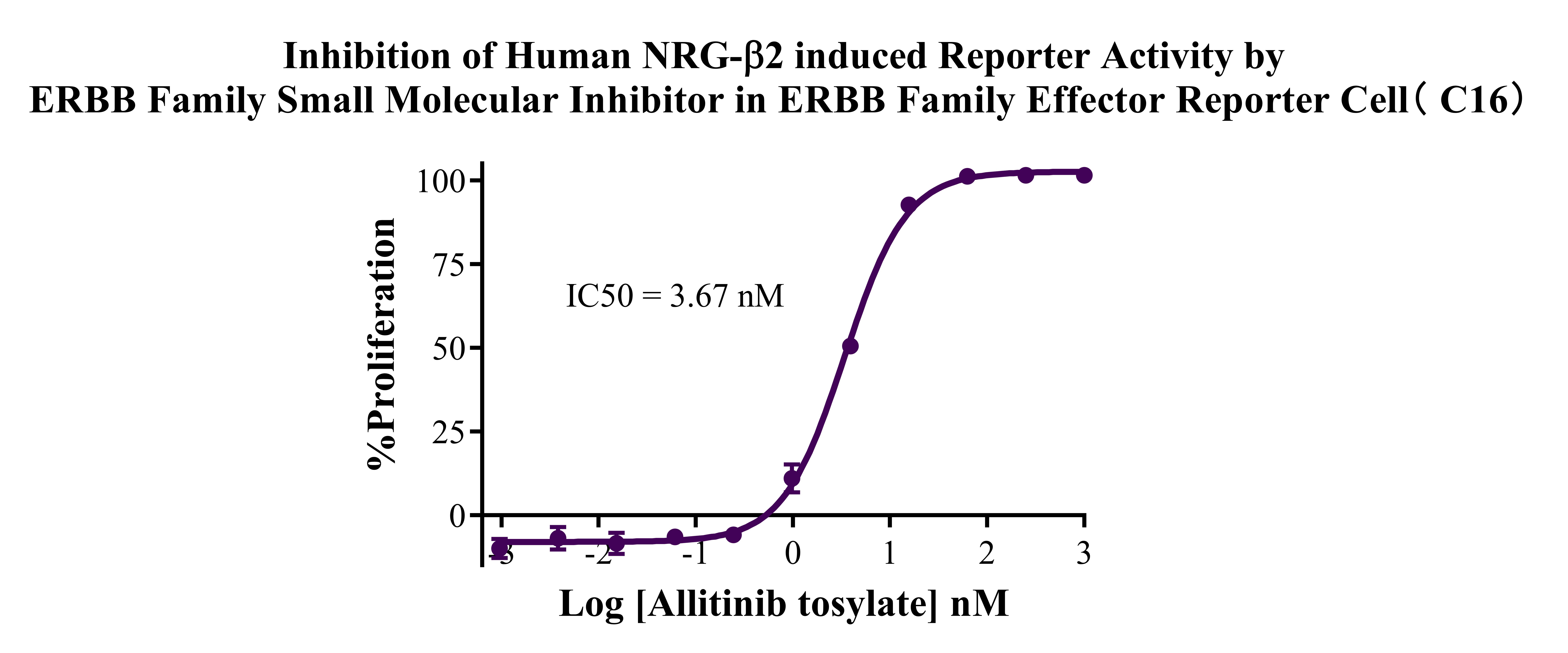 Figure 3. Inhibition of Human NRG-β2 induced Reporter Activity by ERBB Family Small Molecular Inhibitor in ERBB Family Effector Reporter Cell (C16).