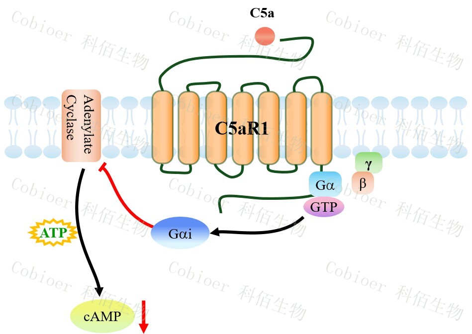 | 補體 C5a 是由補體系統(tǒng)經(jīng) C5 轉(zhuǎn)化酶裂解 C5 產(chǎn)生的強效炎癥介質(zhì),作為核心過敏毒素 通過結(jié)合受體 C5aR1/C5aR2 驅(qū)動中性粒細胞趨化、氧化爆發(fā)及炎性因子(IL-6/TNF-α)釋 放,在膿毒癥中誘發(fā)“細胞因子風暴”,在自身免疫病(如類風濕關(guān)節(jié)炎)中促進組織侵 蝕,在腫瘤微環(huán)境募集髓系抑制細胞(MDSC)介導免疫逃逸。 C5aR1(CD88)是補體過敏毒素 C5a 的高親和力 GPCR,主要表達于髓系細胞(中性 粒細胞、單核細胞、肥大細胞),通過激活 Gi/Gq 蛋白-PI3K/MAPK 通路驅(qū)動炎癥級聯(lián)反應。 |