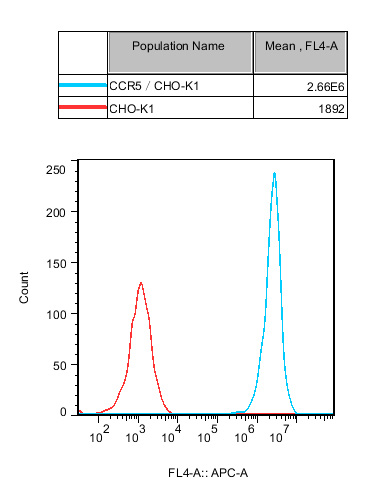 cAMP 在 G 蛋白偶聯(lián)受體(GPCR)信號轉(zhuǎn)導(dǎo)中是一種關(guān)鍵的第二信使。當(dāng)配體結(jié)合到 GPCR,構(gòu)象發(fā)生變化,激活受體接著激活G蛋白,Gi的激活導(dǎo)致腺苷酸環(huán)化酶調(diào)控 cAMP 的下調(diào)。CCR5 藥靶模型很好的模擬了體內(nèi) CCR5 的信號轉(zhuǎn)導(dǎo)過程,原理見下圖所示。![]() Figure 1. CCR5 CHO 細胞模型原理圖