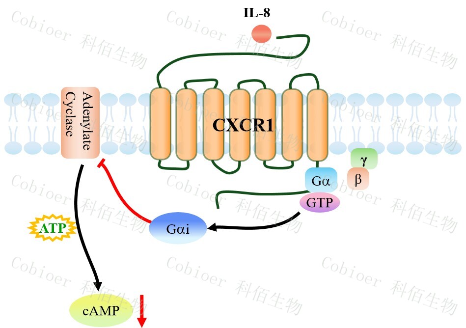 cAMP 在 G 蛋白偶聯(lián)受體(GPCR)信號(hào)轉(zhuǎn)導(dǎo)中是一種關(guān)鍵的第二信使。當(dāng)配體結(jié)合 到 GPCR,構(gòu)象發(fā)生變化,激活受體接著激活 G 蛋白,Gi 的激活導(dǎo)致腺苷酸環(huán)化酶調(diào)控 cAMP 的下調(diào)。CXCR1 CHO 藥靶模型很好的模擬了體內(nèi) CXCR1 的信號(hào)轉(zhuǎn)導(dǎo)過程,原理見下圖所示。![]() Figure 1. CXCR1 CHO 細(xì)胞模型原理圖 |