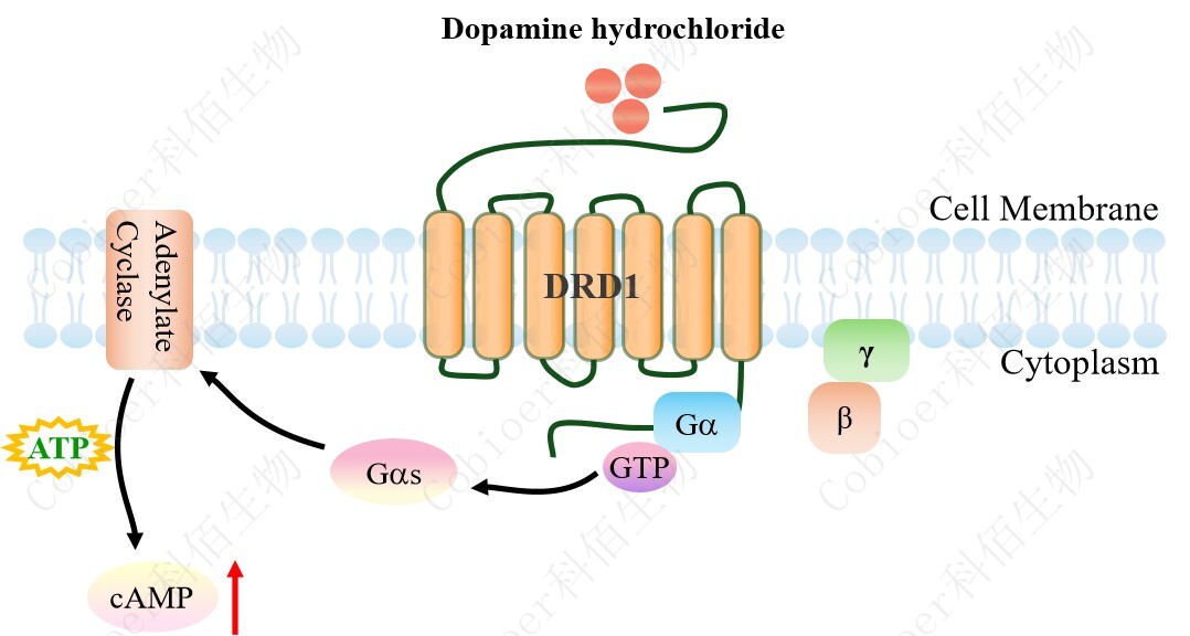 | 多巴胺(DA)是一種主要的兒茶酚胺神經(jīng)遞質(zhì),它與多巴胺受體(DRs)結(jié)合,因此 在中樞神經(jīng)系統(tǒng)(CNS)中起著重要作用,包括睡眠、工作記憶、情緒、學(xué)習(xí)等。DRs 是 由 DRD1、DRD2、DRD3、DRD4 和 DRD5 組成的 G 蛋白偶聯(lián)受體,根據(jù)它們對(duì)腺苷酸環(huán) 化酶(AC)活性的不同調(diào)節(jié)作用,分為 D1 樣受體(DRD1 和 DRD5)和 D2 樣受體(DRD 2、DRD3 和 DRD4)。 D1 樣受體與 Gs 偶聯(lián),其結(jié)合激活腺苷酸環(huán)化酶,增加 cAMP/PKA 級(jí)聯(lián)反應(yīng)的激活。 由 D1 樣受體激活的信號(hào)級(jí)聯(lián)反應(yīng)也可以通過(guò)調(diào)節(jié)轉(zhuǎn)錄對(duì)細(xì)胞功能產(chǎn)生長(zhǎng)期影響。例如,D 1 樣受體激動(dòng)劑會(huì)增加 cAMP 水平和 CREB 在 Ser133 位點(diǎn)的磷酸化,隨后調(diào)節(jié)了許多對(duì)各 種精神疾病的重要基因的轉(zhuǎn)錄。相關(guān)研究表明,一些 D1 激動(dòng)劑的行為效應(yīng)與 cAMP/PKA 信號(hào)傳導(dǎo)無(wú)關(guān),而是涉及非 cAMP 介導(dǎo)的信號(hào)傳導(dǎo),包括 PLC 介導(dǎo)的鈣升高。DA 可通過(guò) 作用于其受體來(lái)調(diào)節(jié)不同免疫細(xì)胞的激活和趨化性,從而充當(dāng)免疫系統(tǒng)的重要調(diào)節(jié)劑。DR D1 是最豐富的多巴胺受體,在中樞神經(jīng)系統(tǒng)(CNS)中高度表達(dá)。DRD1 是治療許多 CNS 疾病的具有吸引力的靶點(diǎn),還包括許多與認(rèn)知能力下降相關(guān)的疾病。 |