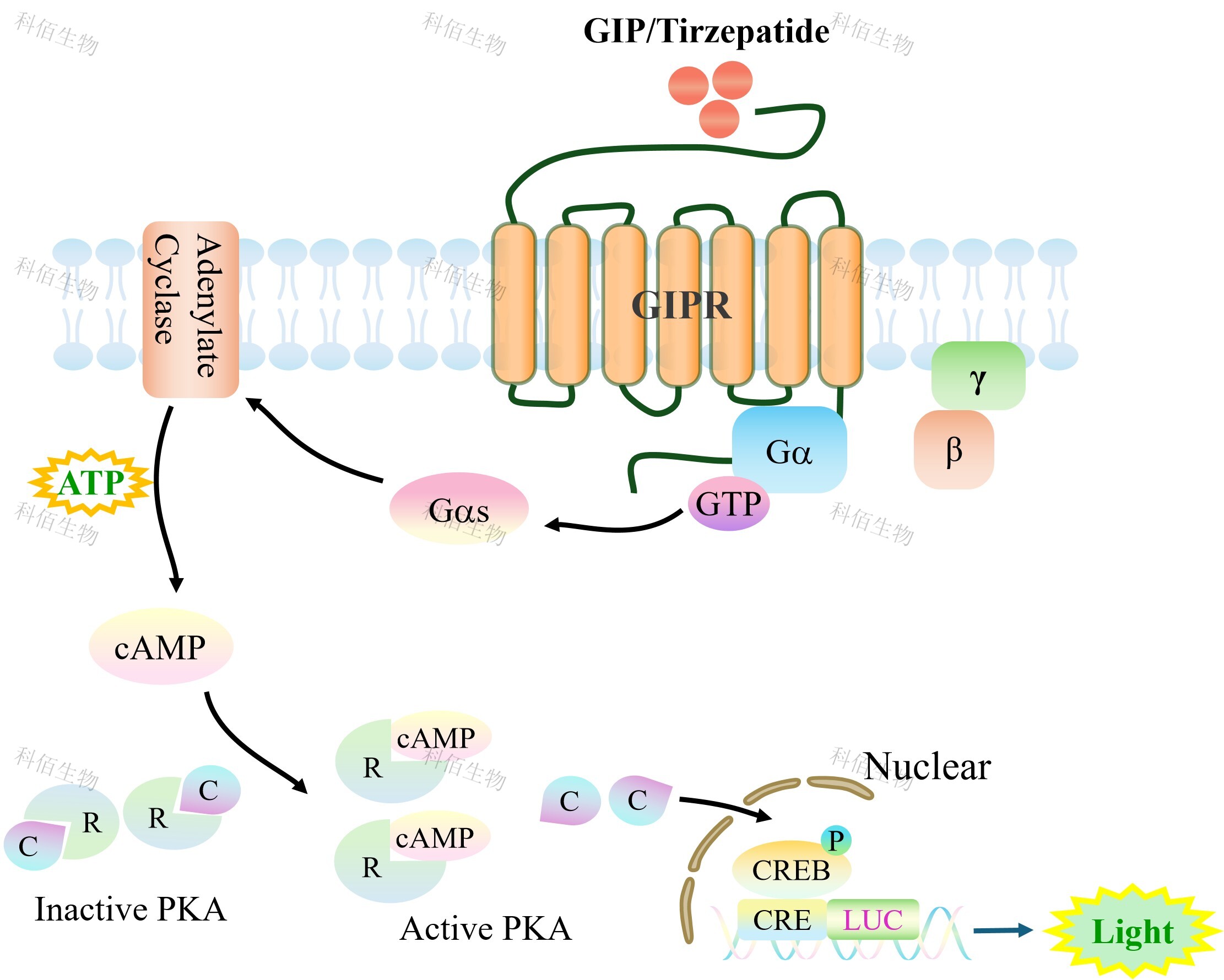 ![]() Figure 1. GIPR CRE-Luc HEK293 細胞模型原理圖 |