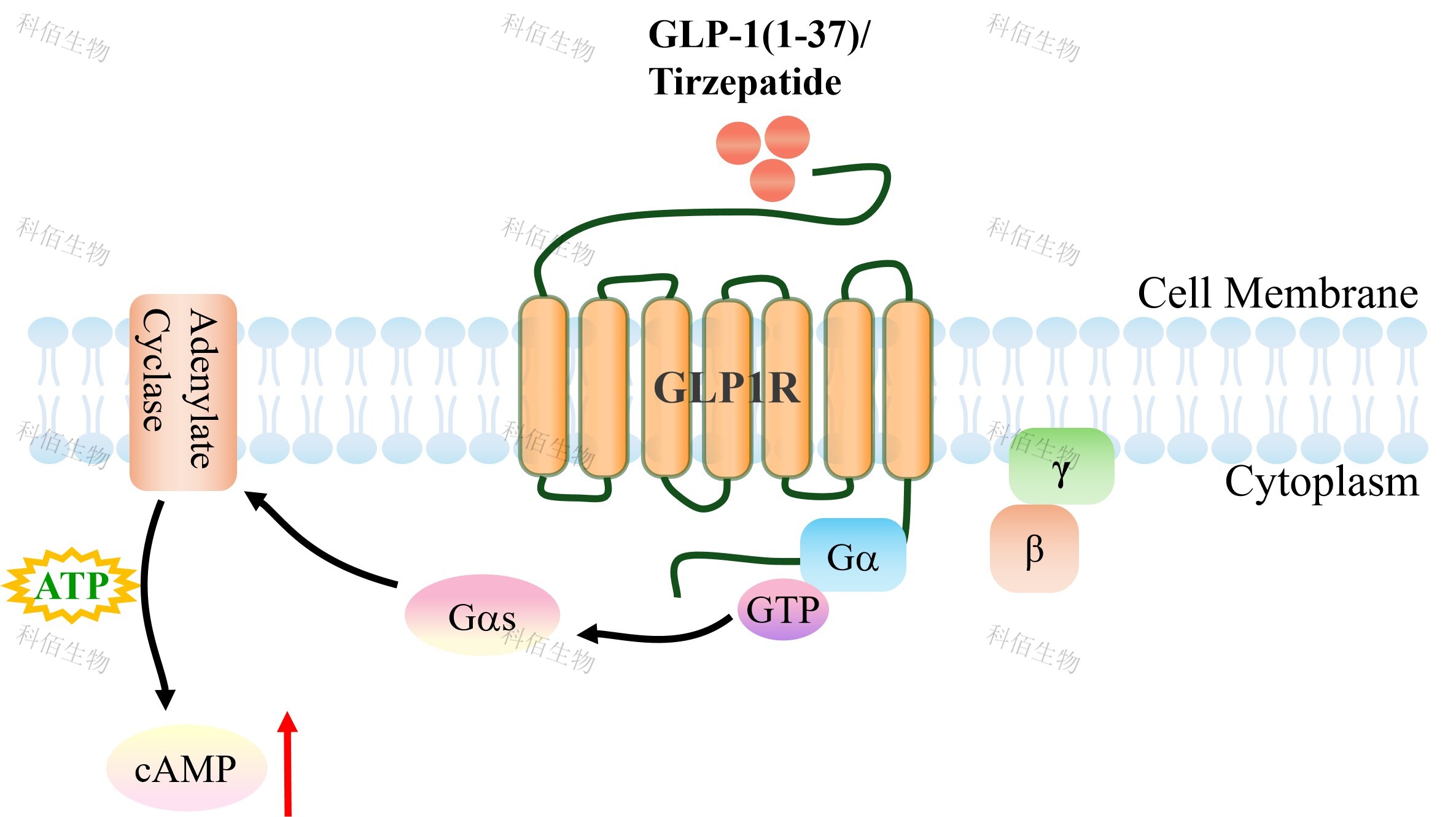 cAMP 在 G 蛋白偶聯(lián)受體(GPCR)信號(hào)轉(zhuǎn)導(dǎo)中是一種關(guān)鍵的第二信使。當(dāng)配體結(jié)合到 GPCR,構(gòu)象發(fā)生變化,激活受體接著激活 G 蛋白,Gs 的激活導(dǎo)致腺苷酸環(huán)化酶調(diào)控 cAMP 的升高。GLP1R 藥靶模型很好的模擬了體內(nèi) GLP1R 的信號(hào)轉(zhuǎn)導(dǎo)過程,原理見下圖所示。![]() Figure 1. GLP1R CHO 細(xì)胞模型原理圖 |