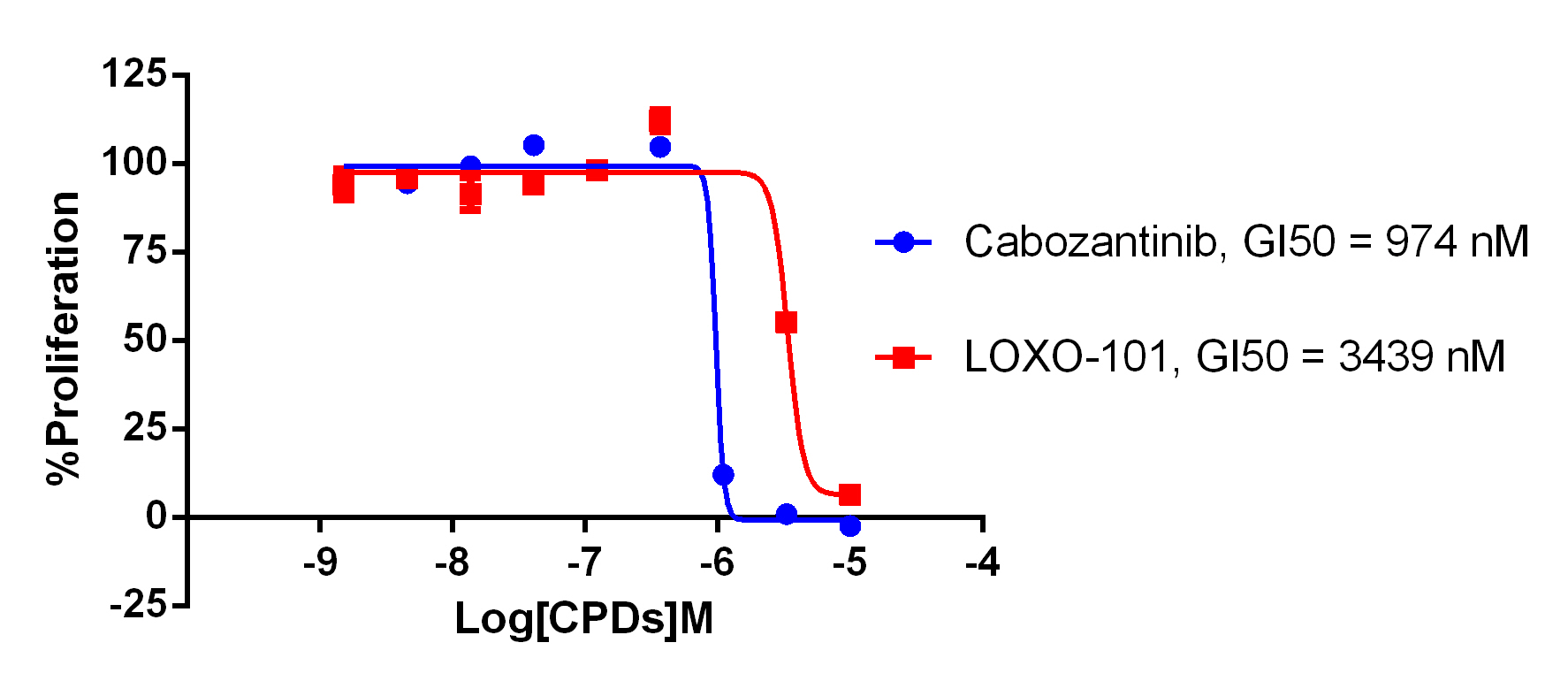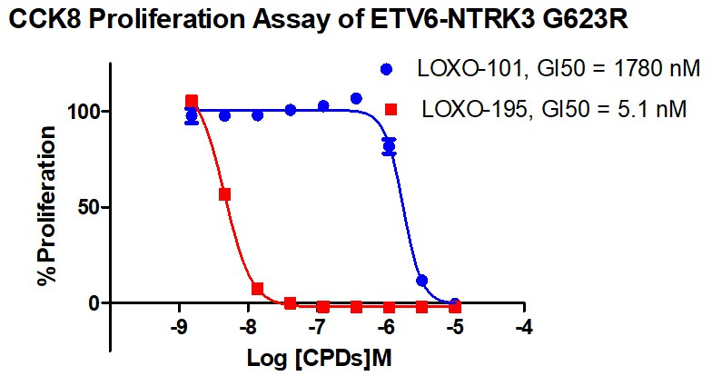 Figure 3. Anti-proliferation assay of two reference compounds on the ETV6-NTRK3-G623R/BaF3 Stable Cell Line.