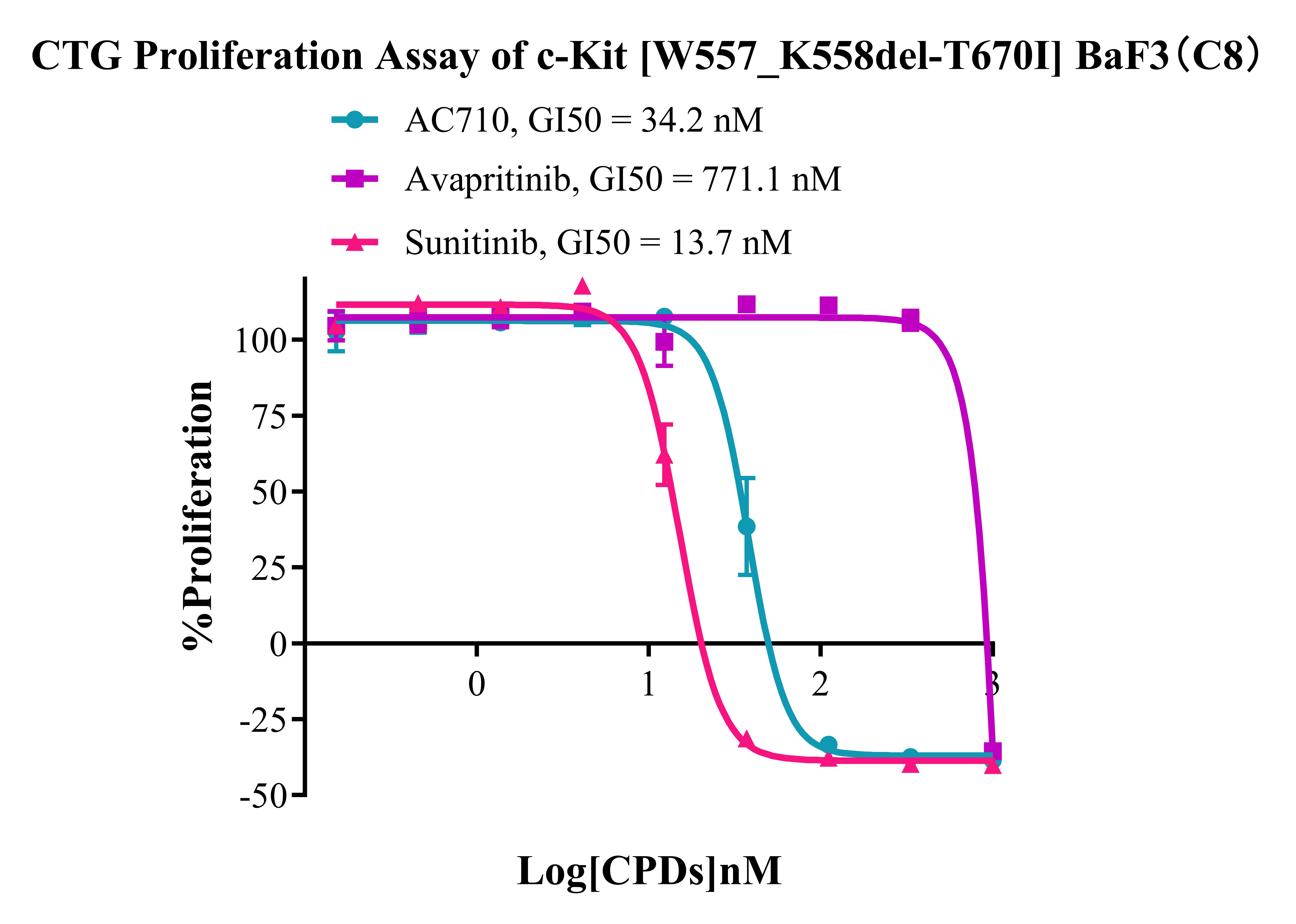 Figure 5. CTG Proliferation Assay of c-Kit [W557_ K558del-T670I] BaF3 (C8). |