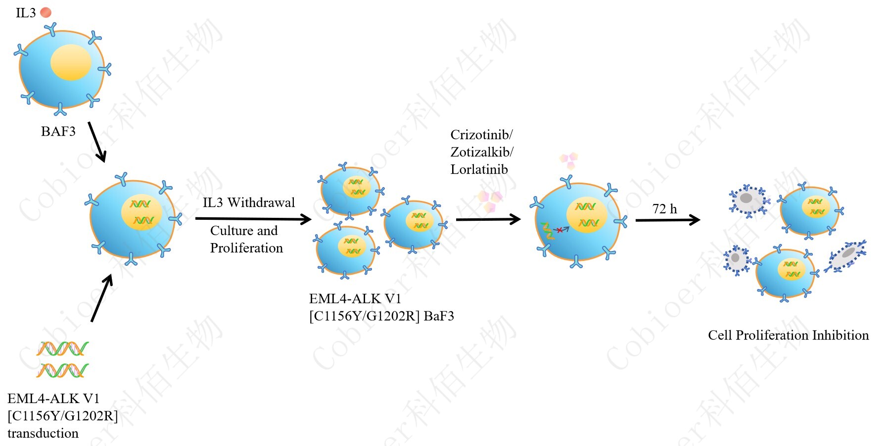BaF3(小鼠原 B 細(xì)胞)的生長和增殖需要 IL-3 的維持。通過引入各種表達(dá)激酶的基因, 能作為 BaF3 的驅(qū)動基因,讓 BaF3 不再依賴 IL-3 而增殖,進(jìn)而激酶基因成為 BaF3 增殖依 賴的驅(qū)動基因,用于評估小分子藥物對激酶的靶向抑制作用,原理及流程見下圖所示。
