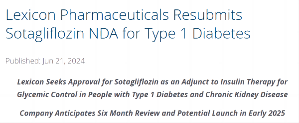 6月21日,Lexicon宣布,在與FDA進行多次互動并得到最近的反饋后,該公司已重新提交了索格列凈(sotagliflozin)的新適應癥申請,作為胰島素治療的輔助藥物,用于1型糖尿病和慢性腎臟病(CKD)患者的血糖控制。