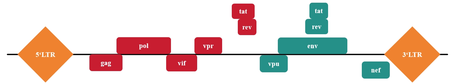 3. 輔助基因包含:vif、vpr、vpu、nef