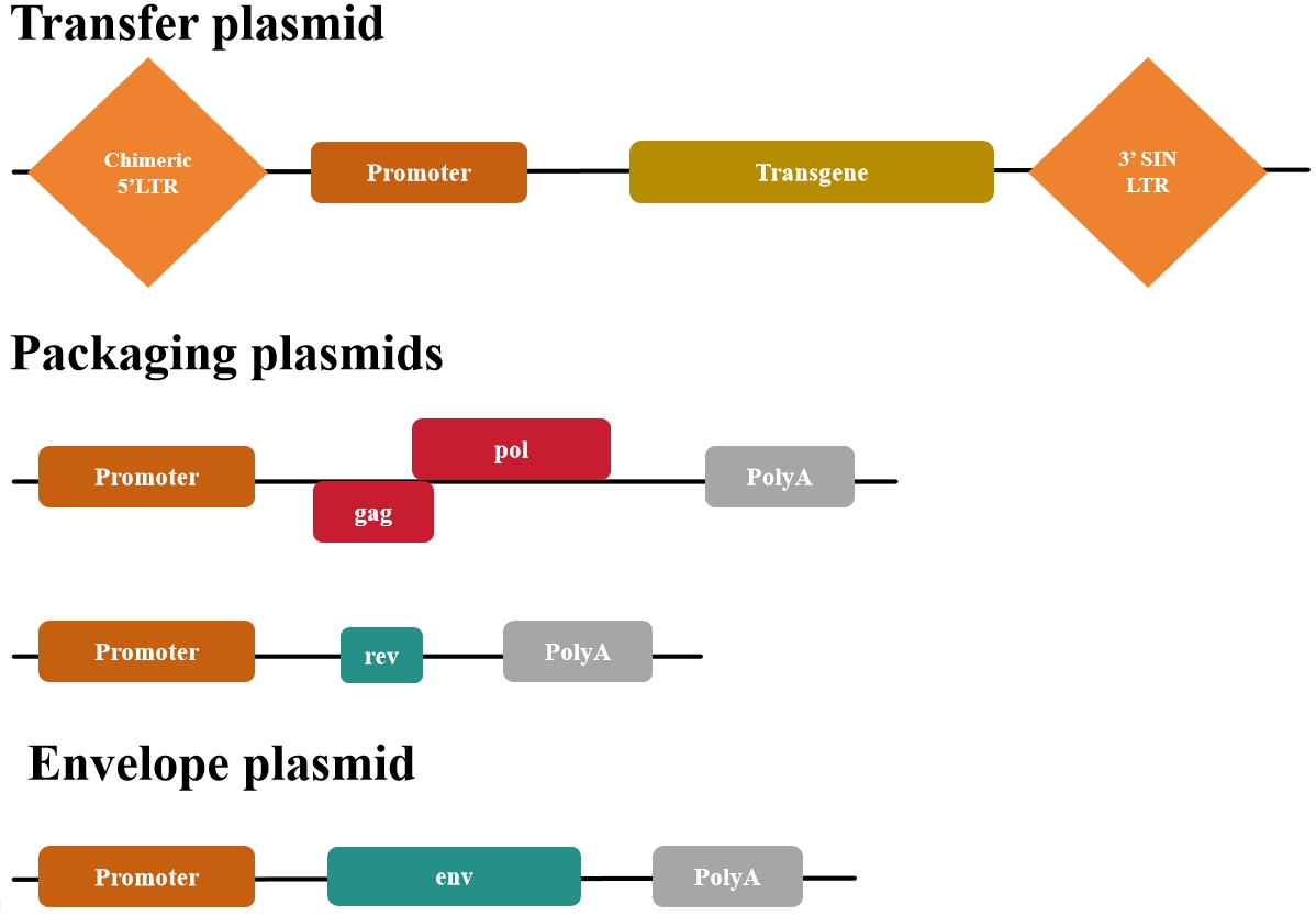 第一代慢病毒質(zhì)粒缺乏安全性改進(jìn)以及無法生產(chǎn)具有復(fù)制能力的慢病毒(即產(chǎn)生能夠感染細(xì)胞并進(jìn)一步自我復(fù)制的病毒顆粒),基本已經(jīng)廢棄使用了。