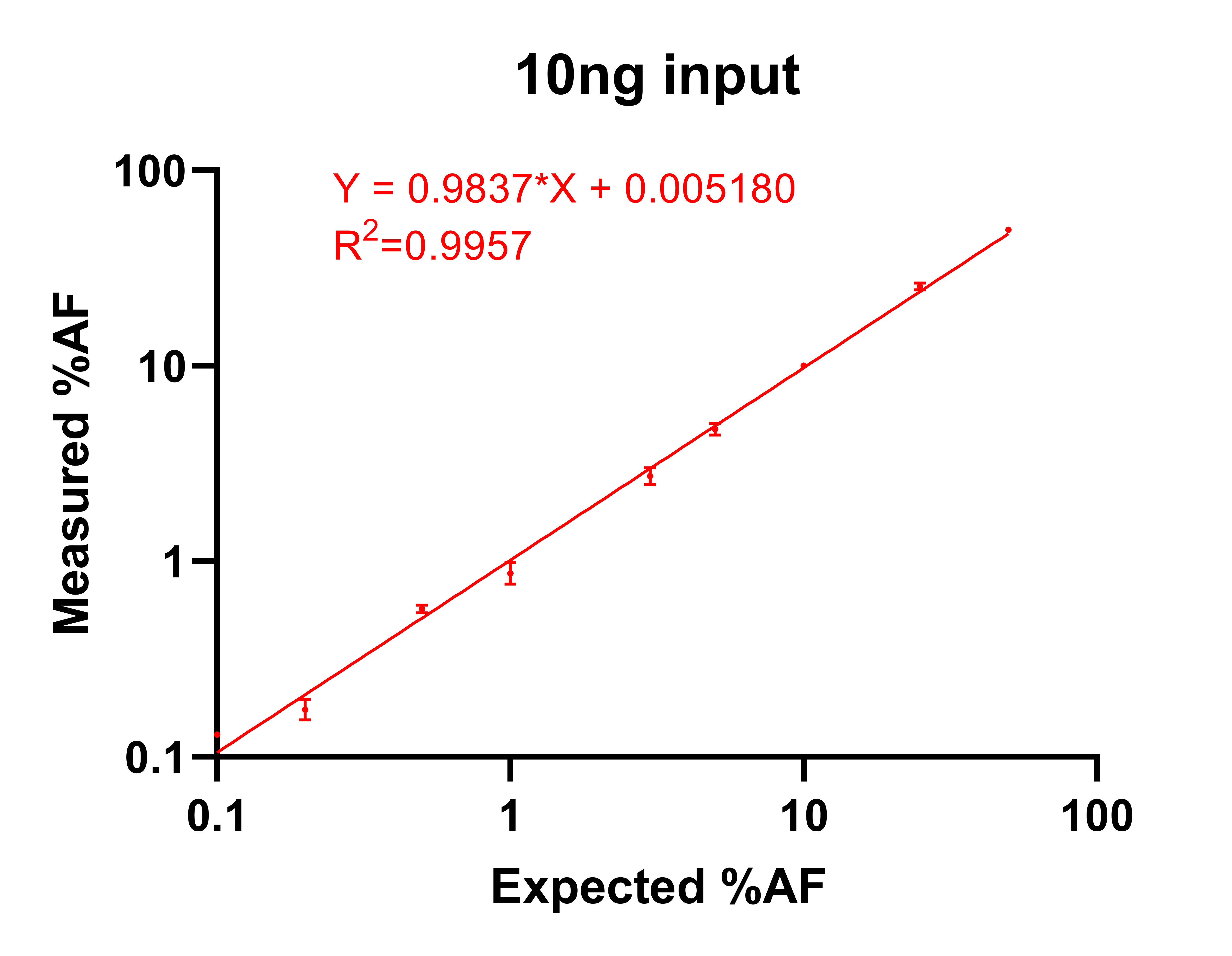 由上數(shù)據(jù)可見:在10ng的投入量下,AF%呈現(xiàn)非常好的線性稀釋,存在波動,但是都在誤差范圍內(nèi)。