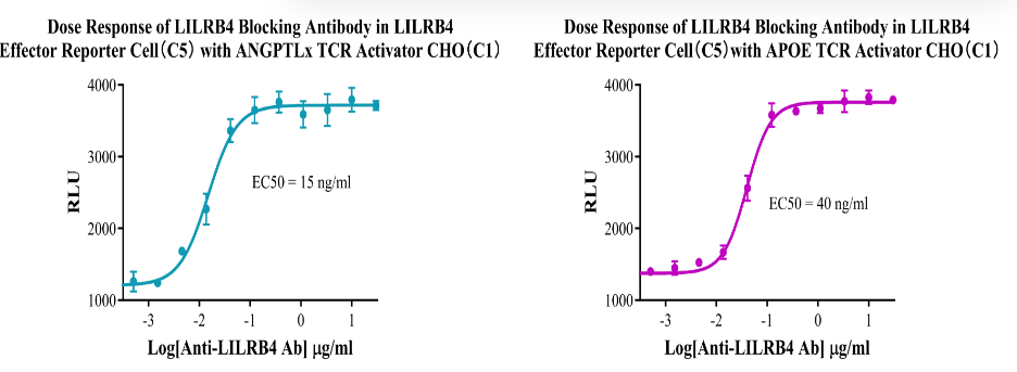 Figure 10. Dose response of LILRB4 Blocking antibody in LILRB4 Effector Reporter Cell(C5) With ANGPTLx TCR Activitor CHO(C1) and APOE TCR Activitor CHO(C1).