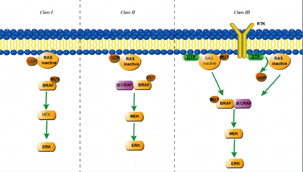 BRAF突變根據(jù)活化的機(jī)制不同,分為三種類型: